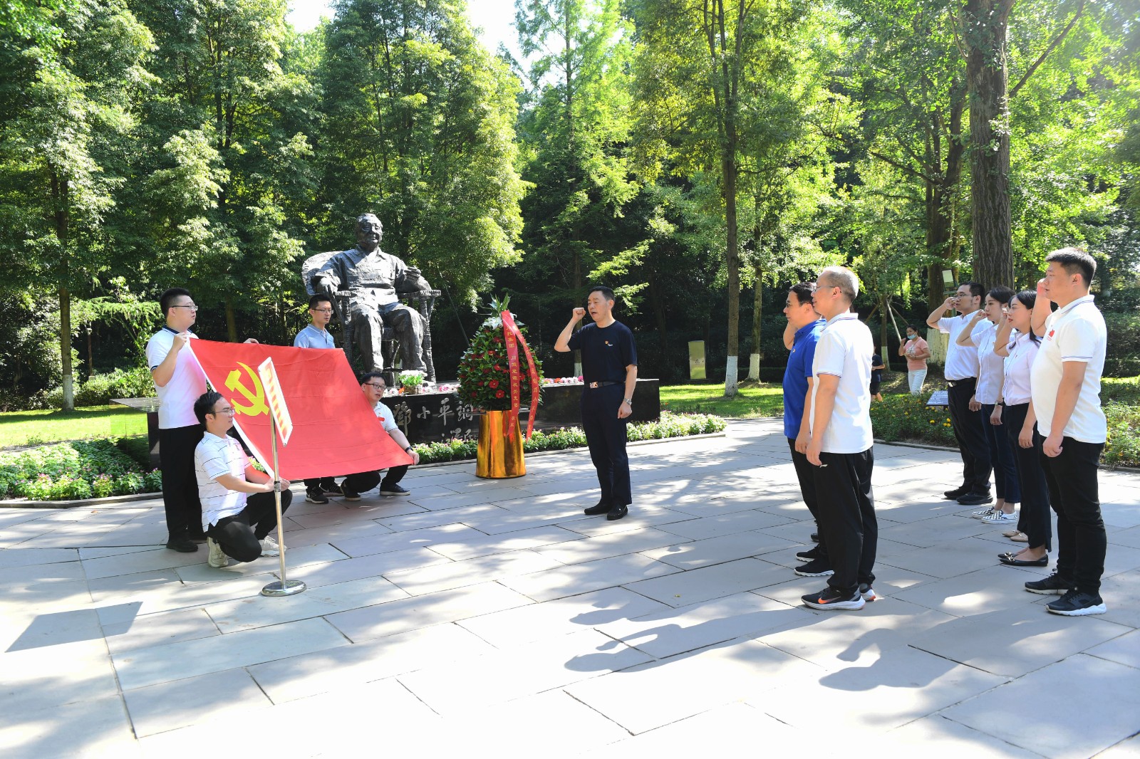 在鄧小平故里,全體黨員在鄧小平銅像前深深三鞠躬,敬獻花籃,表達了對一代偉人的深切緬懷和無限敬仰之情。仰望偉人銅像,面向鮮紅黨旗,全體黨員整齊列隊,在鄧凱同志帶領下重溫入黨誓詞,莊嚴宣誓:“我志愿加入中國共產黨,擁護黨的綱領,遵守黨的章程,履行黨員義務……”隨后大家走進鄧小平故居陳列館、鄧小平緬懷館、鄧小平故居等地參觀學習。觀看文獻紀錄片《小平你好》、現場接受黨性教育主題宣講教學,全體黨員深入了解了鄧小平同志波瀾壯闊的人生歷程,切身感受了偉人敢為人先的膽識和氣魄,深刻體會了改革開放的巨大變化和不朽功績。