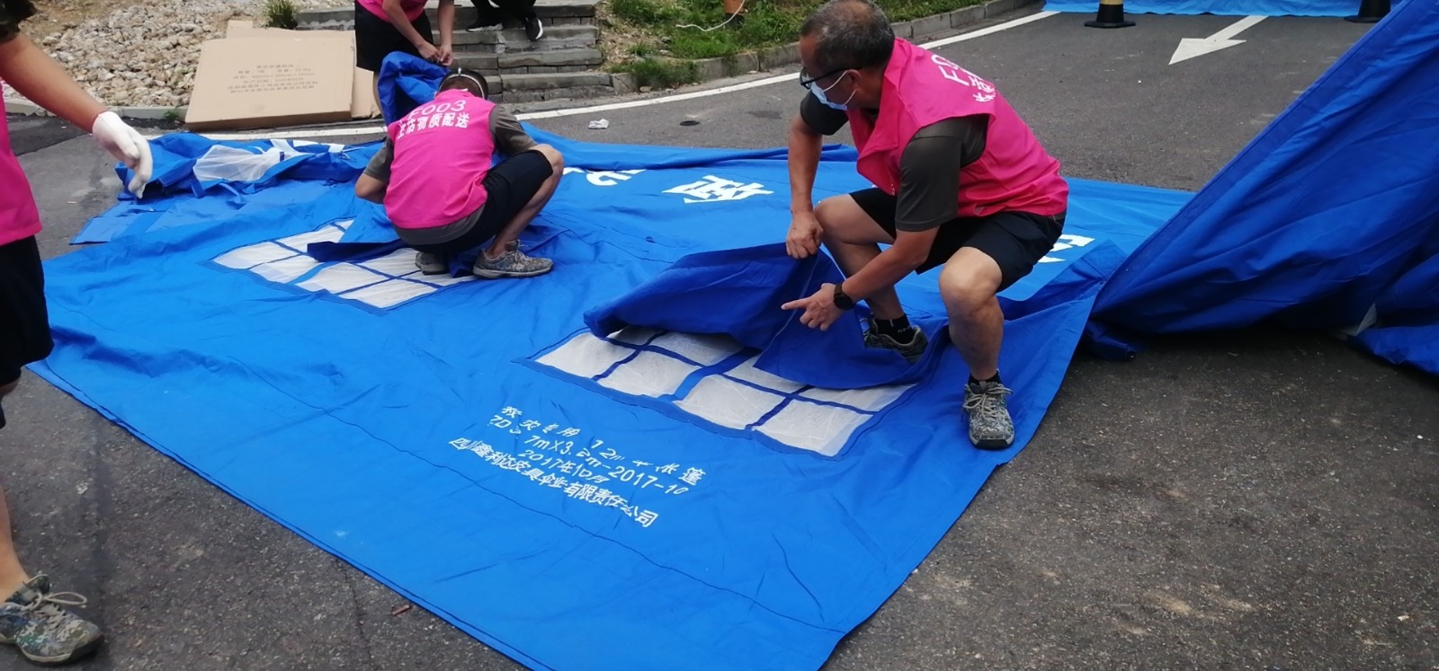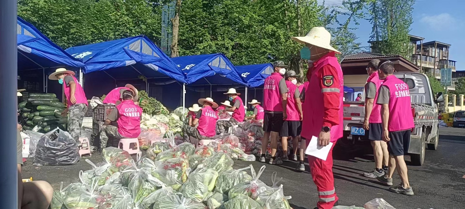 在當地疫情防控指揮部的帶領下,王成勇、祝長青,身披“志愿紅”,深入封控區域,從晨光熹微到燈火闌珊,一整天都是后背全濕,每一天都是腰酸背痛。但他們明白,“哪里需要就沖向哪里”。二人先后9次進入高風險區搭建應急帳篷,為的是這一頂頂帳篷能夠為來自四面八方、各行各業的志愿者們遮風擋雨,每天一趟趟一袋袋的蔬菜、肉、米、油,讓當地居民與游客每天都能夠安心避疫。