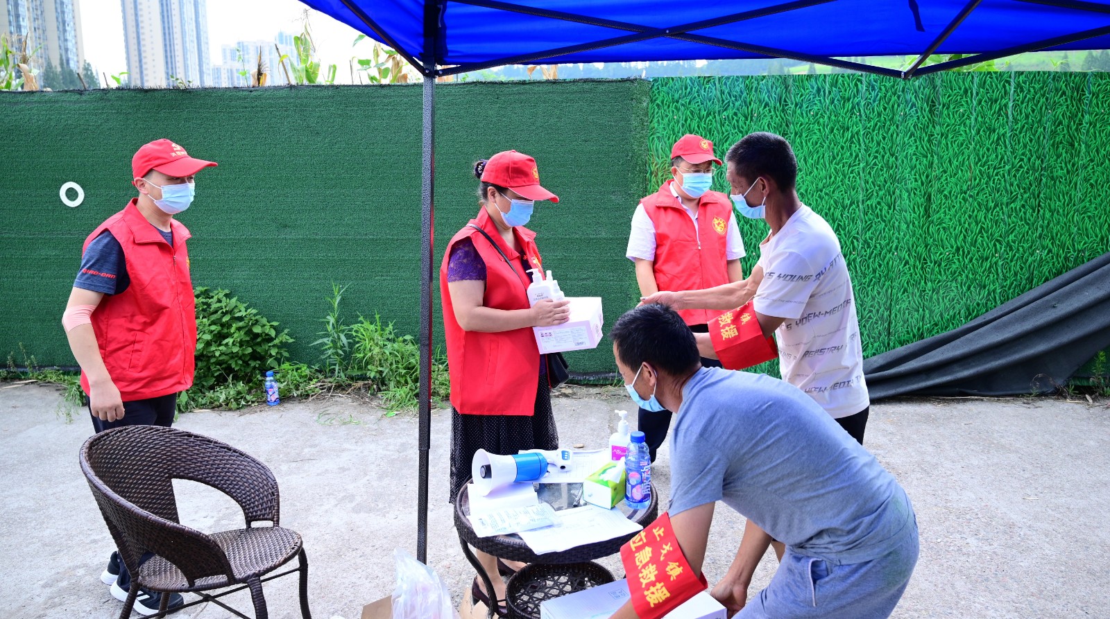 烈日高溫使豆大的汗珠從謝愛東的額頭不斷滑落,每當其他志愿者提出換她休息時,“沒問題,我可以的”便是不變的回應?!芭c家鄉人民一道共度難關,哪怕再熱、再苦、再累都值得?!?