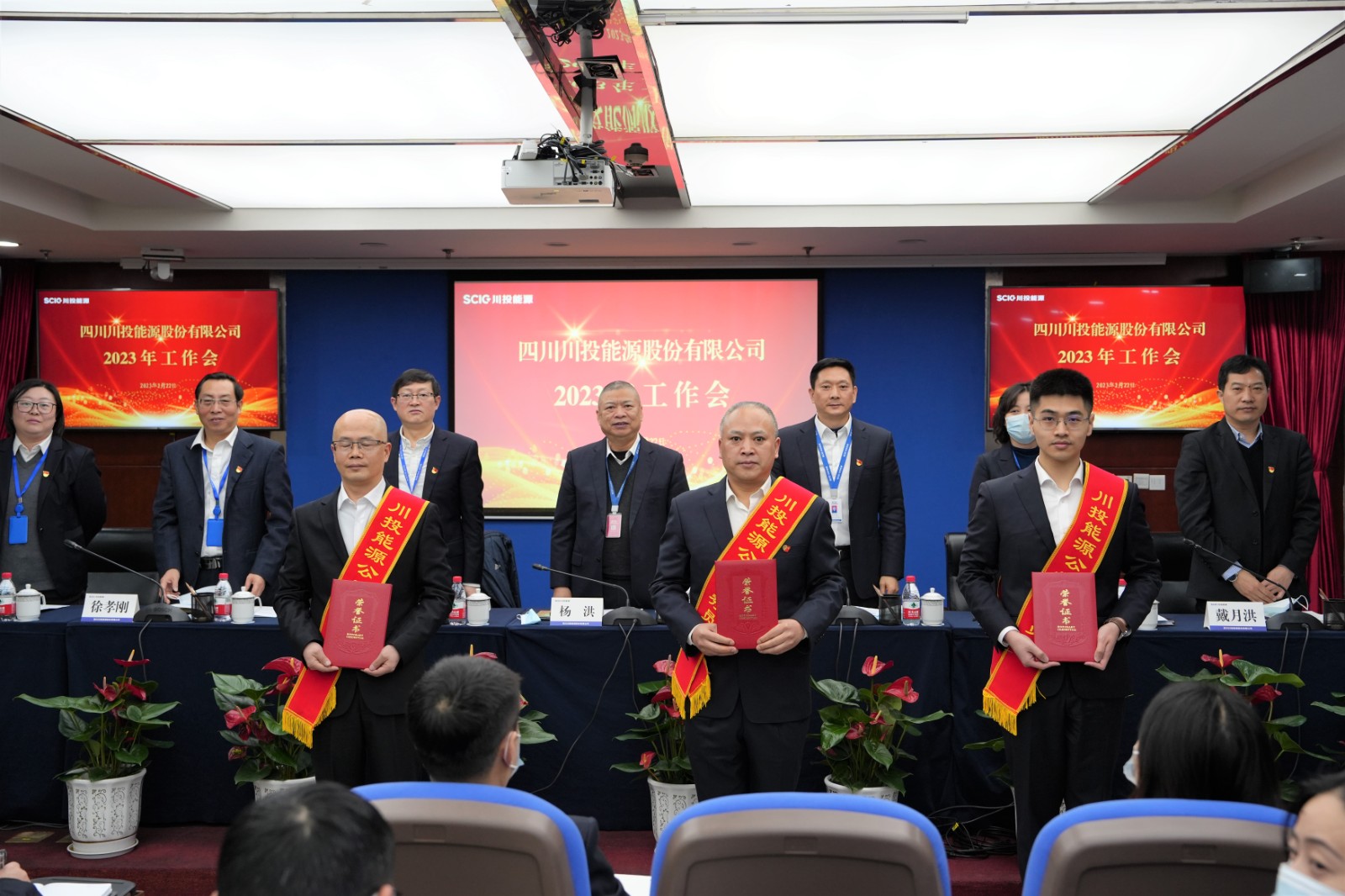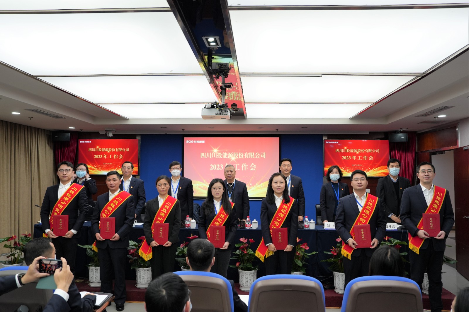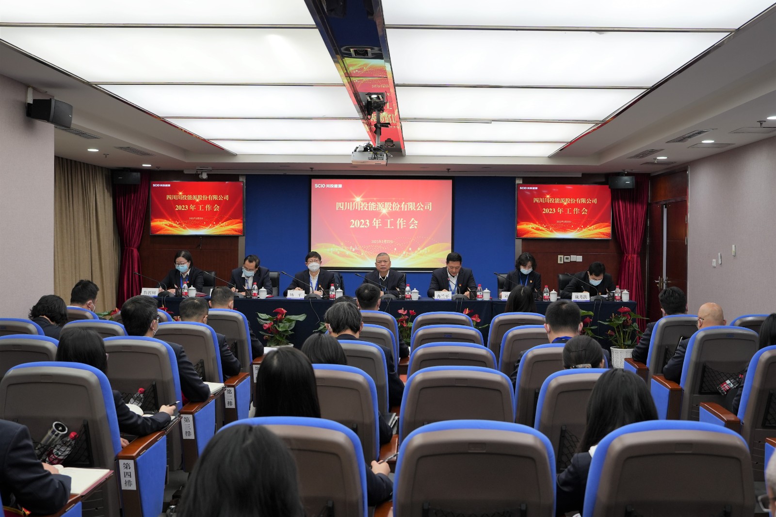 本次會議通過現(xiàn)場+視頻方式召開。川投能源領(lǐng)導班子成員及全體本部員工、所屬企業(yè)主要負責人、受表彰優(yōu)秀員工等近180人參加會議。