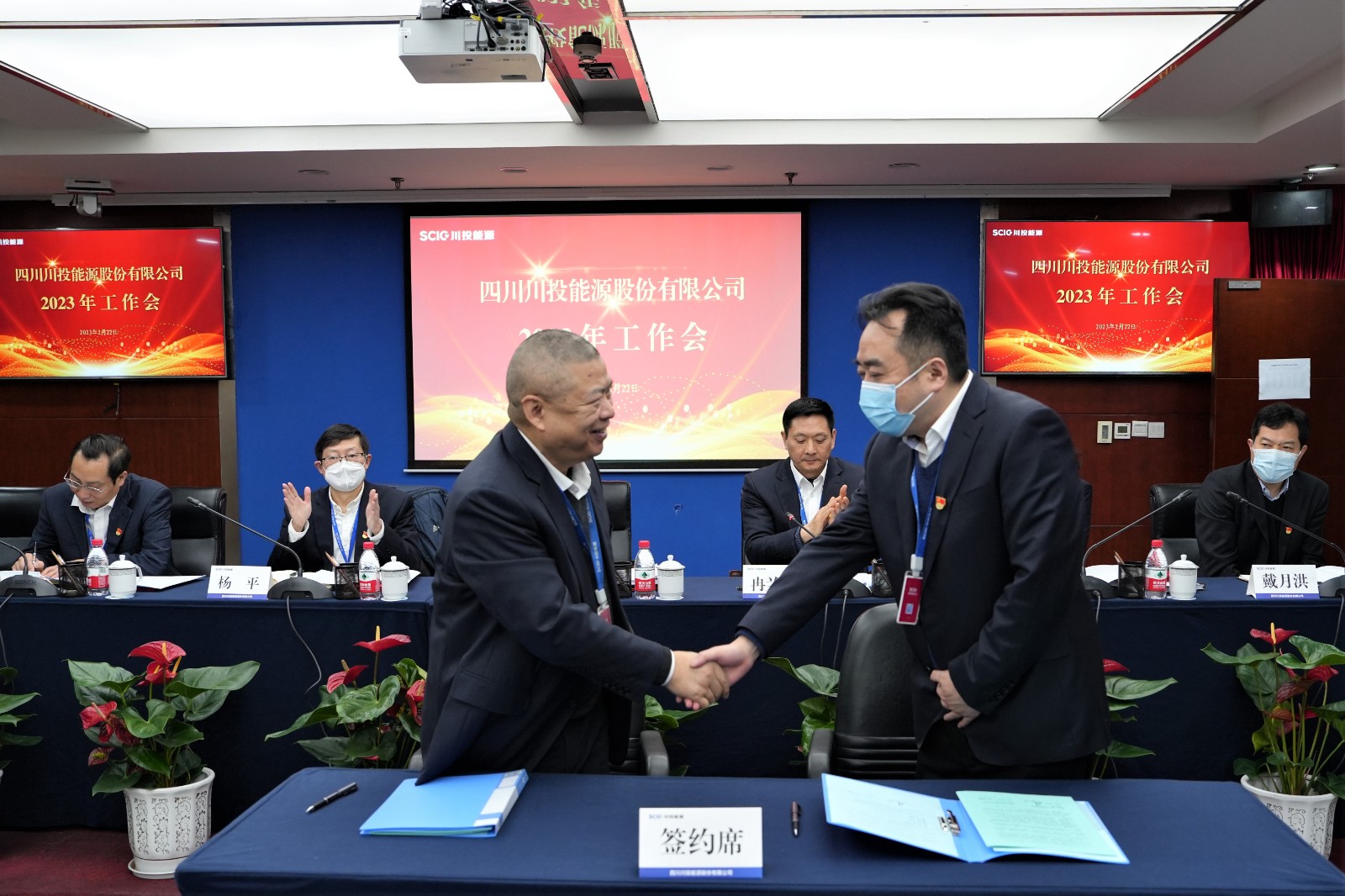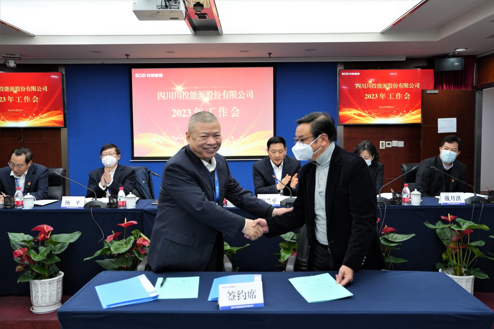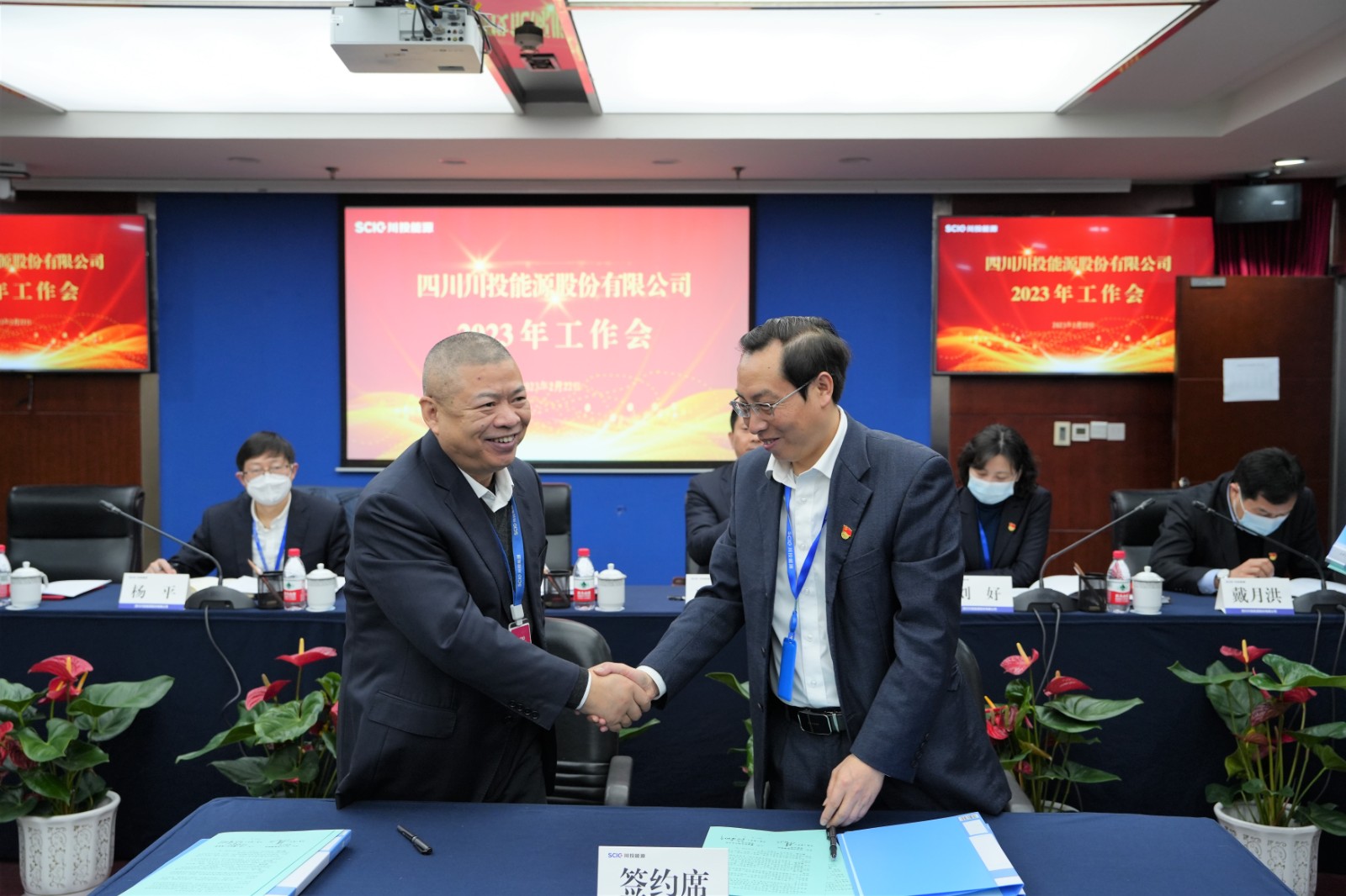 會上,楊洪與所屬企業(yè)負責人代表簽署了《經(jīng)營業(yè)績責任書》《安全生產(chǎn)、環(huán)境保護工作目標責任書》;冉蘭平宣讀2022年度優(yōu)秀員工表彰通報;黨委委員、副總經(jīng)理、總法律顧問楊平作2022年安全環(huán)保工作總結(jié)及2023年重點工作安排;黨委委員、財務(wù)總監(jiān)劉好傳達川投集團2023年工作會精神。