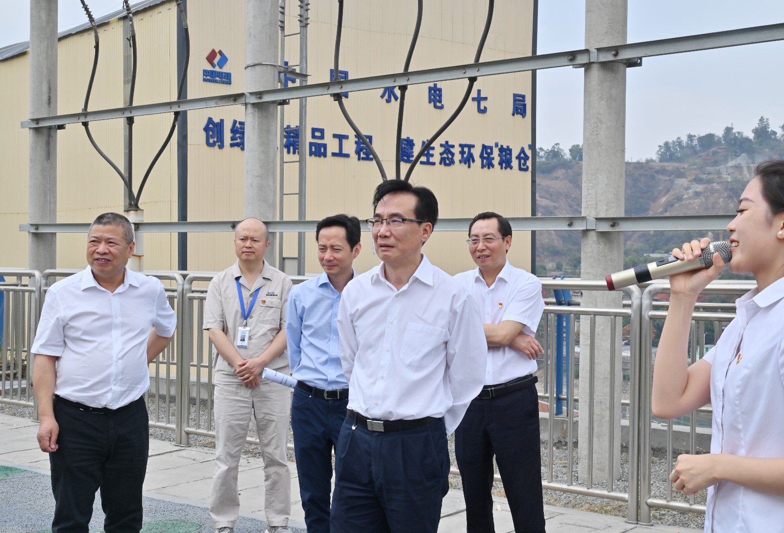 在銀江水電站黨建宣傳陣地,吳曉曦聽取了攀水電黨總支“七色陽光大黨建”品牌介紹,對攀水電黨總支深入開展學習貫徹習近平新時代中國特色社會主義思想主題教育,把支部建在工地上,以黨建引領工程建設和公司高質量發展給予了充分肯定,并要求攀水電黨總支及時跟進主題教育學習,繼續積極打造川投能源“支部聯建示范基地”,把銀江水電站建好,把新能源項目開拓好。