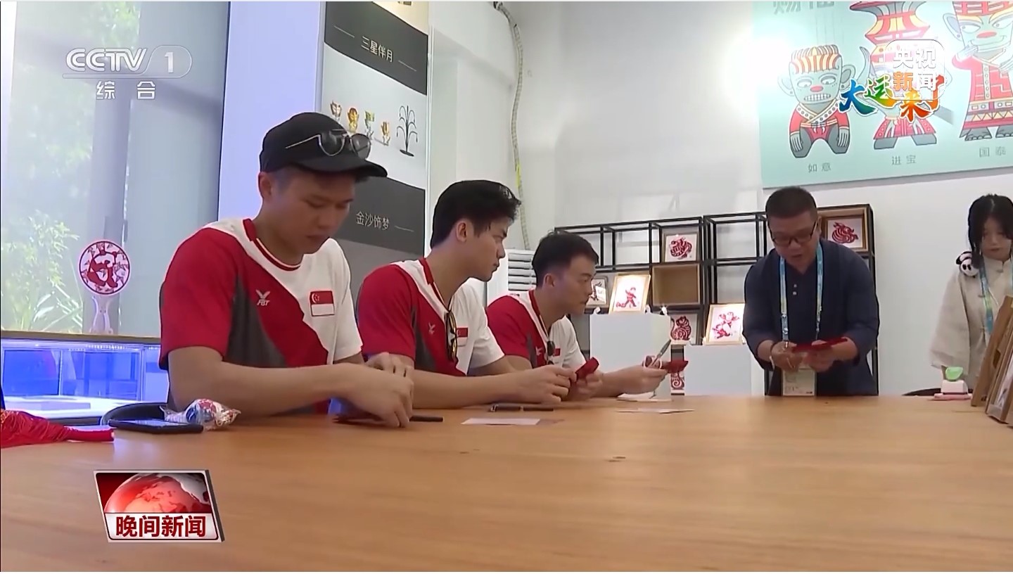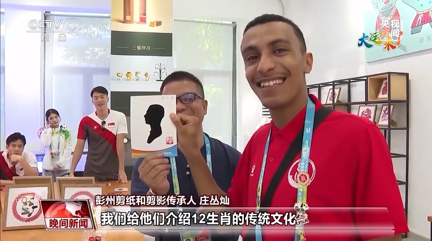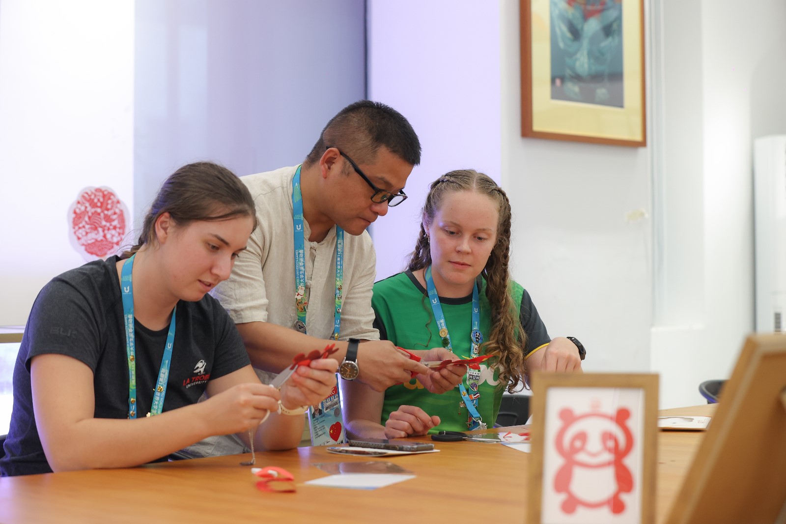 大運(yùn)會(huì)期間,成都大運(yùn)村里掀起一股“非遺熱”,引得各大媒體前來競相報(bào)道。互動(dòng)體驗(yàn)中心里,神奇的剪紙也吸引了中外運(yùn)動(dòng)員們紛紛前來參與體驗(yàn)。