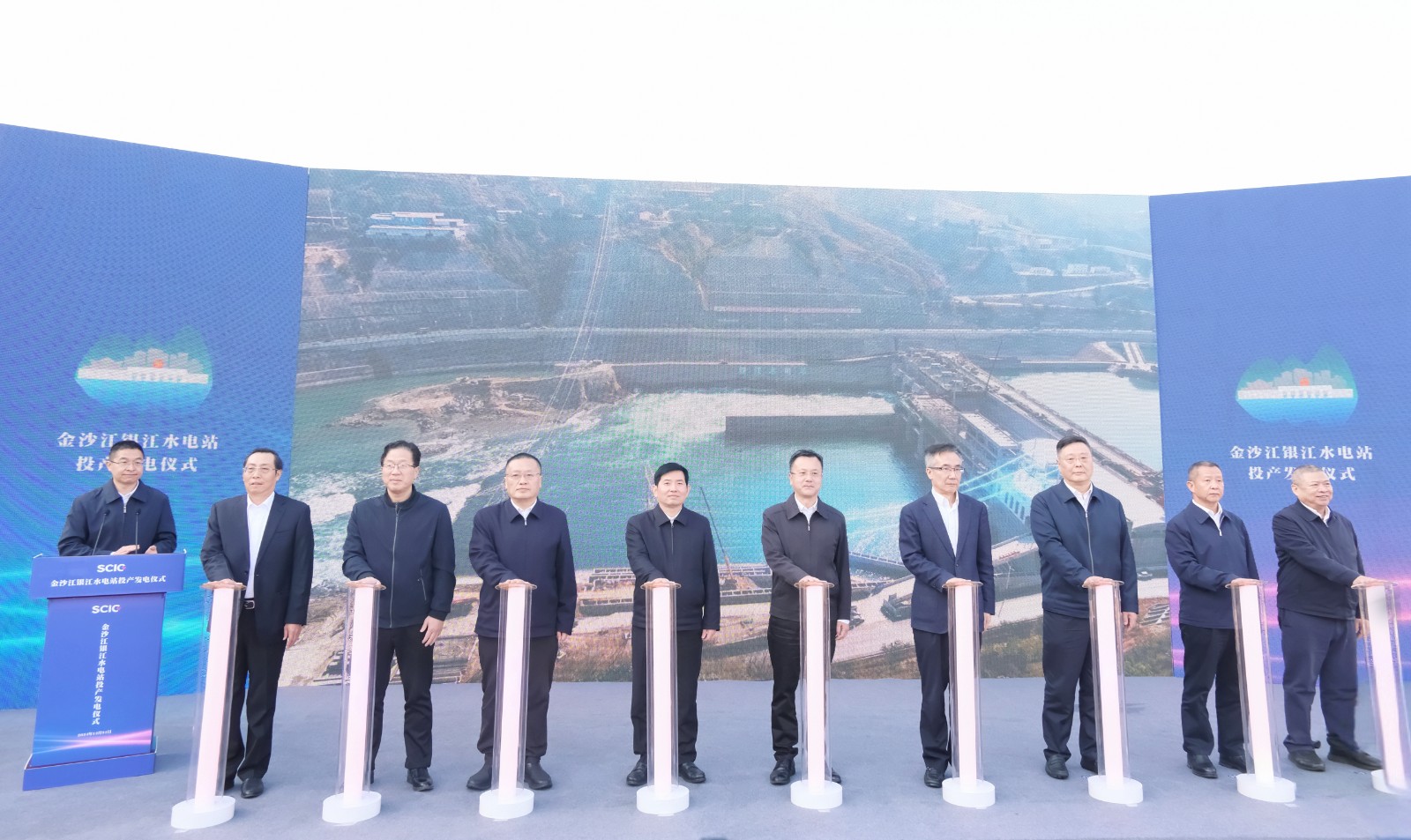 上午9時許,隨著儀式現(xiàn)場下達首臺機組開機發(fā)電指令,吳群剛、吳曉曦、范繼躍、李文志、林建國、李仁杰等領導按下啟動柱,共同啟動金沙江銀江水電站投產(chǎn)發(fā)電,標志著該水電站提前一年實現(xiàn)投產(chǎn)發(fā)電目標。