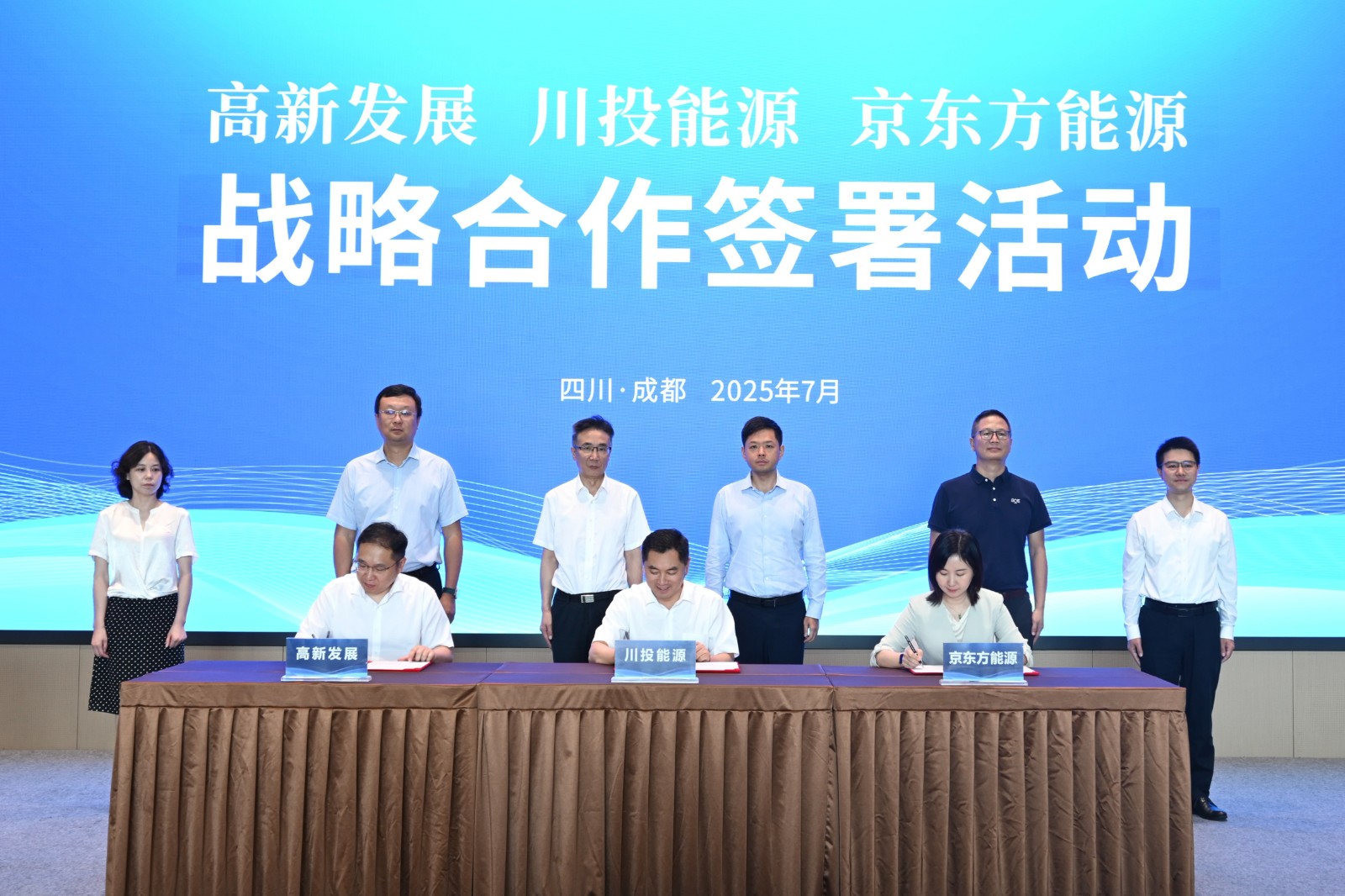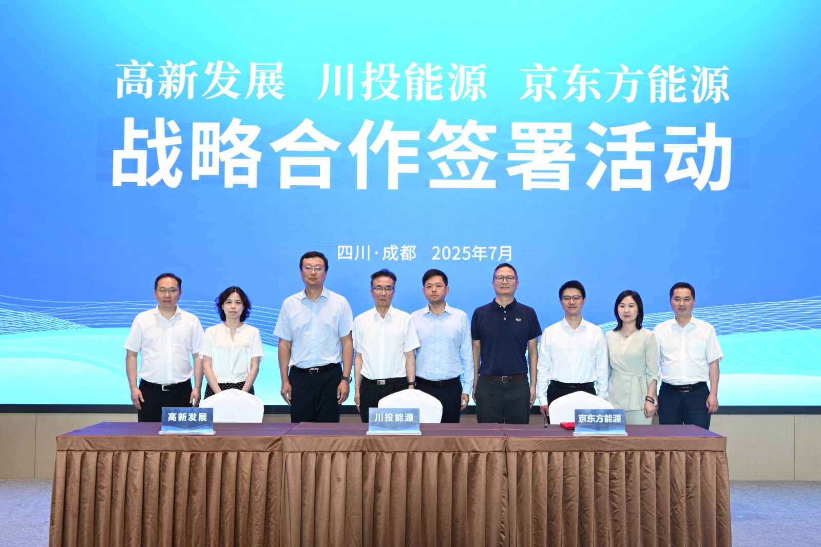 7月25日,四川川投能源股份有限公司、成都高新發(fā)展股份有限公司與京東方能源科技股份有限公司在成都高新西區(qū)IC設計產業(yè)園簽署戰(zhàn)略合作協(xié)議,在全國范圍共同推進新型儲能示范項目、能源互聯(lián)網(wǎng)構建及新能源產業(yè)投資。成都高新區(qū)黨工委委員,管委會副主任車軸;四川能源發(fā)展集團黨委副書記、副董事長、總經(jīng)理,川投能源董事長吳曉曦;京東方科技集團副總裁,京東方能源科技黨支部書記、董事長馬亮;成都高投集團黨委副書記、總經(jīng)理,電子集團董事長,高新發(fā)展董事長周志等有關領導出席活動并見證簽約。