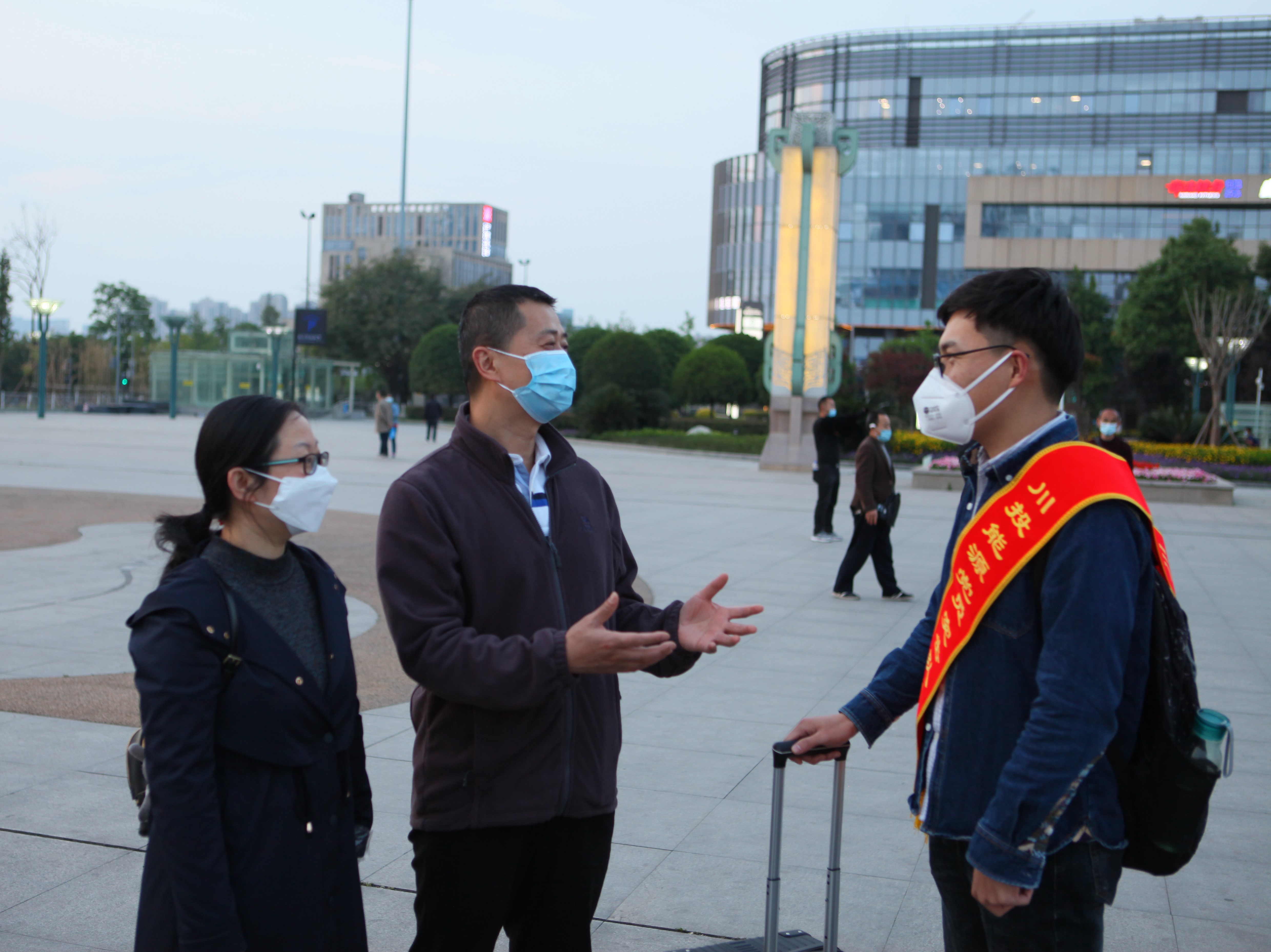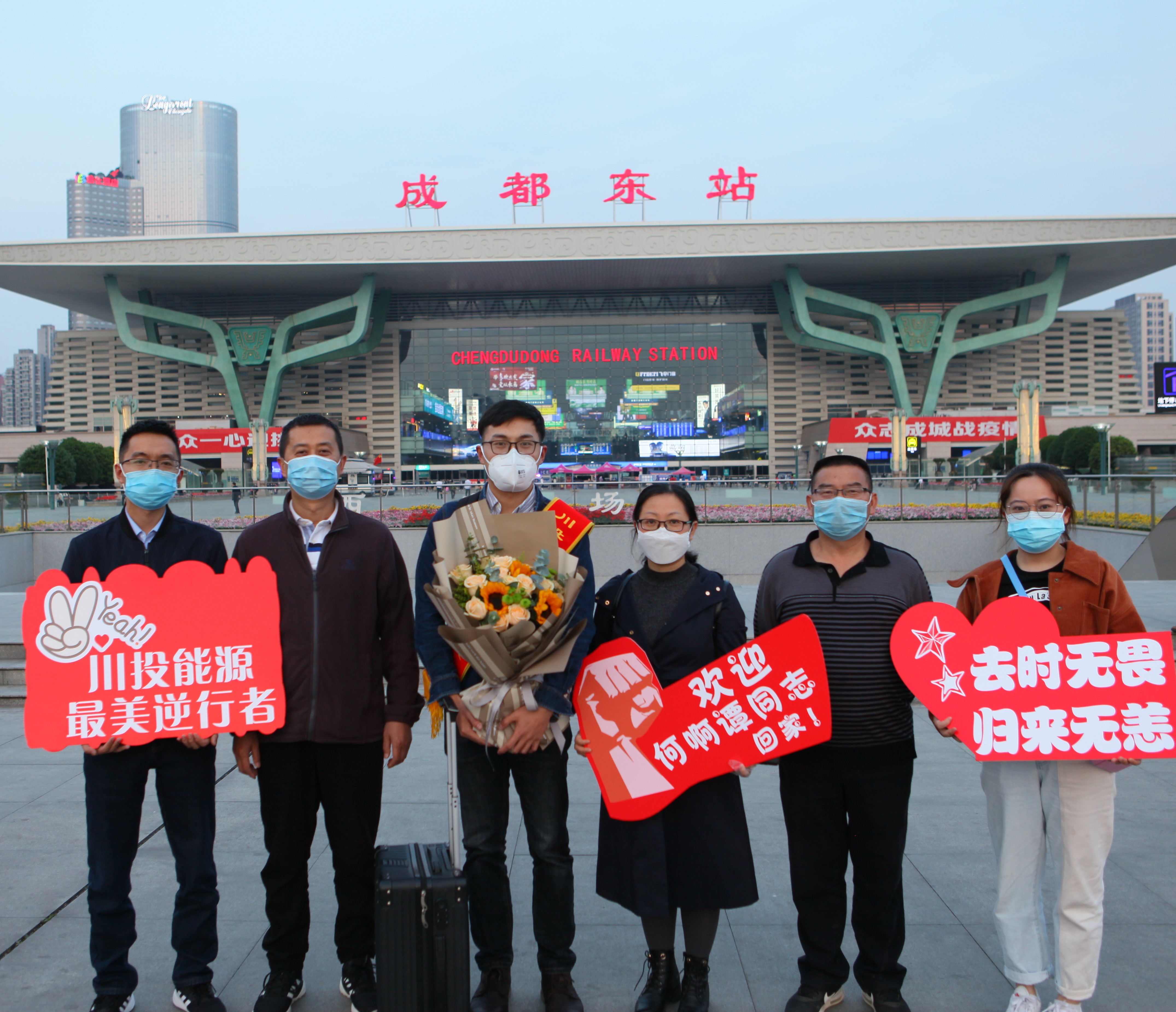 4月25日,川投能源 “最美逆行者”、交大光芒工程突擊隊(duì)隊(duì)員何啊潭同志圓滿完成在武漢鐵路局的值守任務(wù),帶著勝利和平安凱旋歸來。川投能源黨委副書記、工會(huì)主席楊超龍與黨群工作部主任楊鑫以及交大光芒黨總支委員汪志橋一道,手捧鮮花,到成都東站迎接川投能源“最美逆行者”回家。