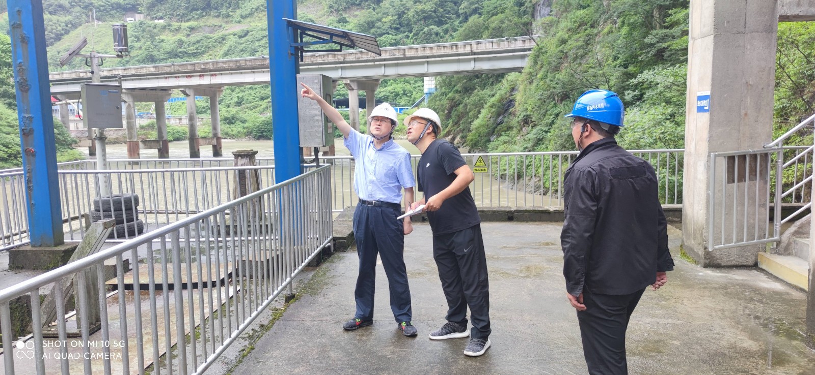 楊平一行先后前往腳基坪電站大壩及發電廠區實地檢查指導,檢查組對大壩水庫調度情況、應急電源保障、防汛物資儲備、閘門啟閉設備與電站的壓力容器特種設備、發電機主設備及GIS設備進行了專項檢查。