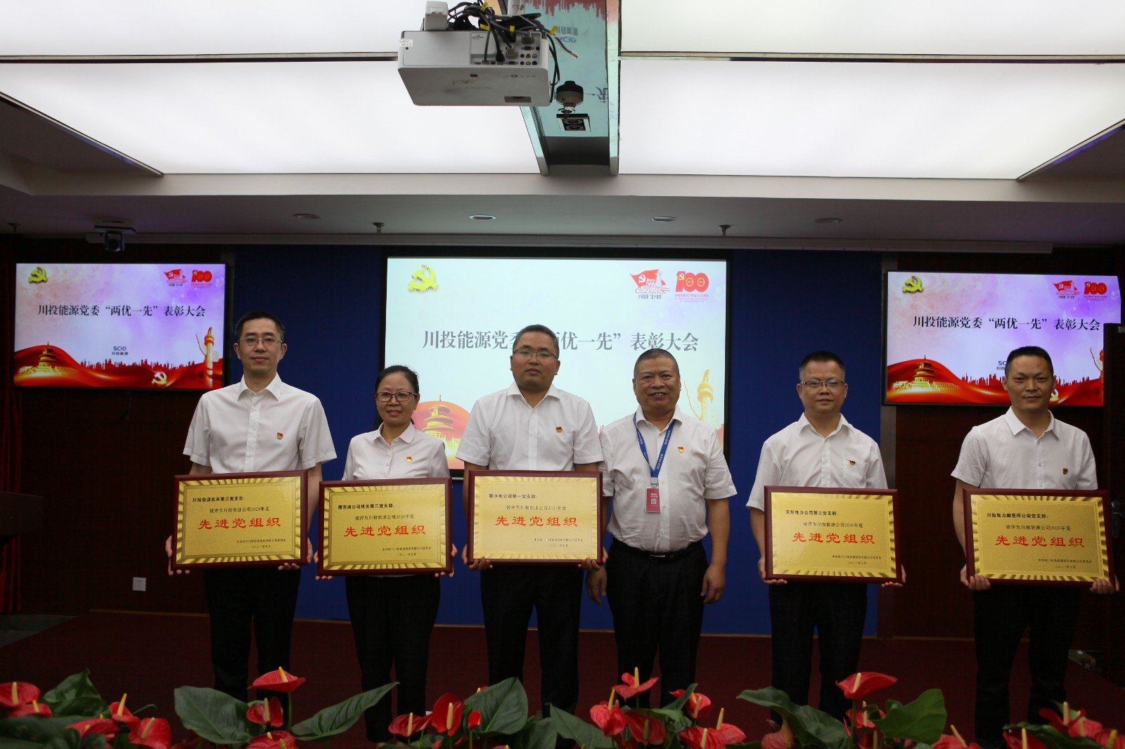 6月28日上午,川投能源黨委召開“奮進新征程 永遠跟黨走”慶祝建黨100周年暨先進表彰大會,以一系列簡樸而莊重的儀式,砥礪川投能源人的初心使命,激越起賡續(xù)發(fā)展的壯懷豪情。會議由黨委副書記、工會主席楊超龍主持,以視頻方式連線各單位分會場,共計200余名黨員職工參會。
