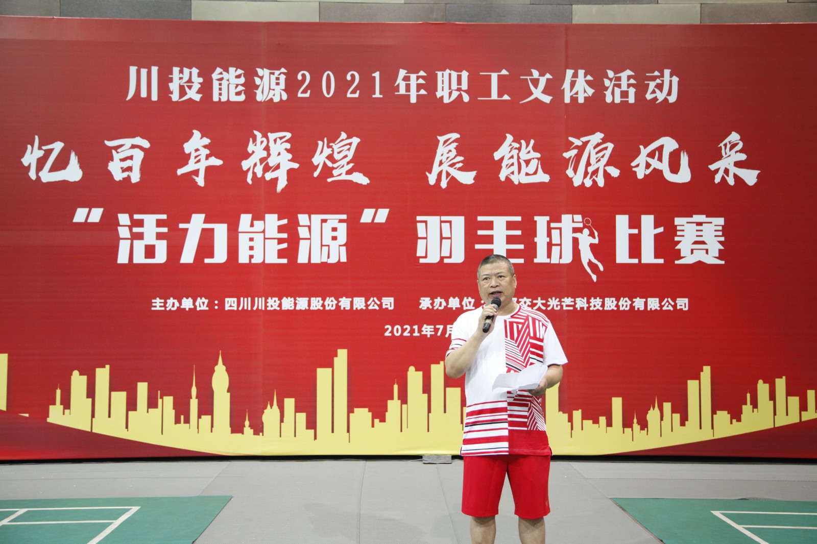 楊洪代表川投能源對此次職工羽毛球比賽的開幕表示祝賀,對積極協(xié)助并承辦本次羽毛球比賽的交大光芒公司全體同仁表示衷心感謝,并向全體運動員、裁判員、工作人員致以親切慰問。他表示,好風(fēng)憑借力,揚帆正當(dāng)時。在全民健身已經(jīng)上升為國家戰(zhàn)略的今天,開展“活力能源”既是順時代發(fā)展的浪潮,更是為企業(yè)文化豐富形式,為團(tuán)隊力量凝聚人心,為職工健康謀求保障。他要求,全體參賽選手要在比賽中繼續(xù)發(fā)展體育精神、弘揚光榮傳統(tǒng)、賡續(xù)紅色血脈,樹立堅定勝利的信心,不怕失敗的恒心,不畏艱難的決心。他強調(diào),川投能源全體職工要積極響應(yīng)習(xí)近平總書記在慶祝中國共產(chǎn)黨成立100周年大會上的號召,用飽滿的熱情、拼搏的信念、團(tuán)結(jié)的精神,繼續(xù)為實現(xiàn)中華民族偉大復(fù)興不懈努力,努力為黨和人民爭取更大光榮。