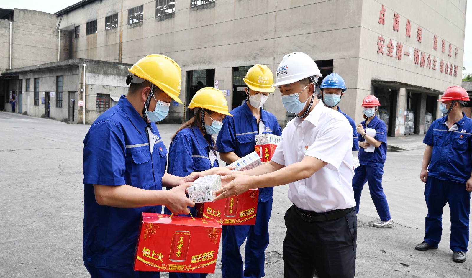 按照川投能源黨委、工會統一部署,楊超龍一行來到槽漁灘公司炭素廠,為奮戰在工作崗位上的一線職工送上了清涼飲料、藿香正氣液、清涼油等防暑降溫用品,并叮囑他們在工作崗位上做好防暑降溫、安全生產和疫情防護工作。