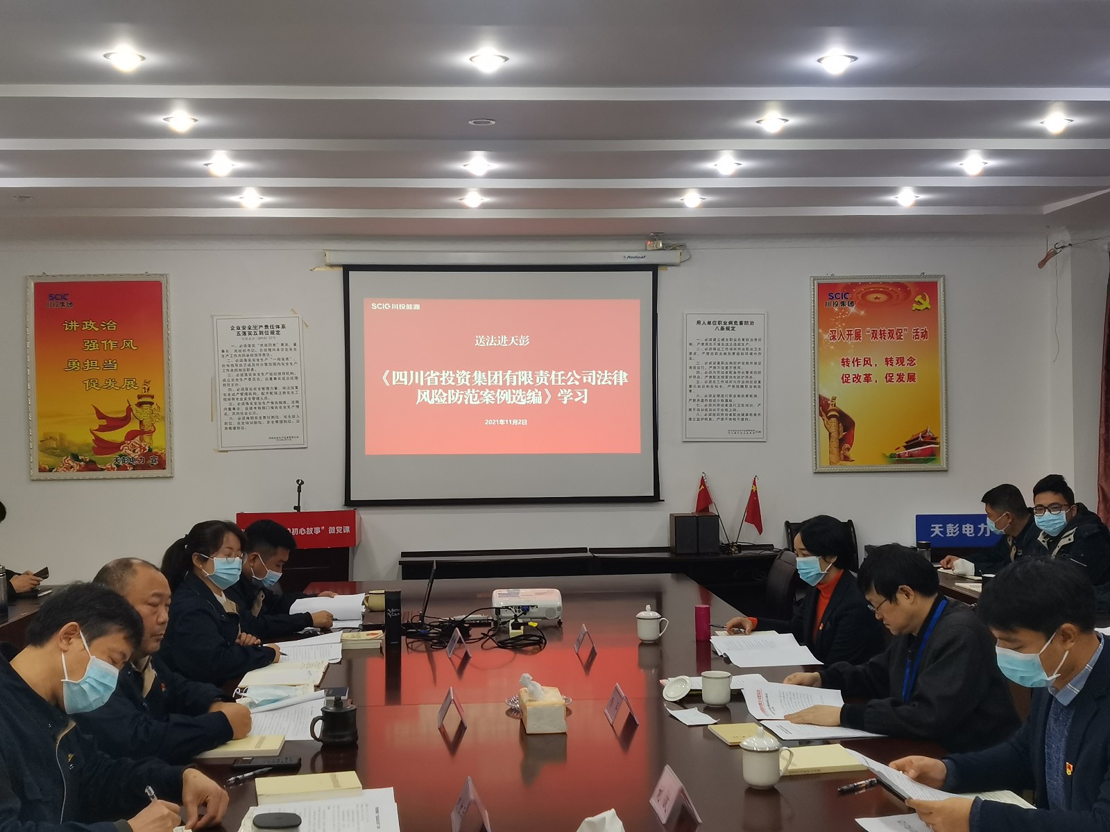 按照川投能源關(guān)于開展以案學(xué)法、以案促改活動的部署安排,11月2日,川投能源黨委委員、副總經(jīng)理、總法律顧問楊平率隊(duì)來到天彭電力,以現(xiàn)場宣講方式“送法進(jìn)天彭”。天彭電力經(jīng)營班子、黨員干部和關(guān)鍵崗位人員參加了活動。