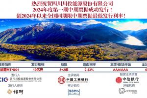 川投能源成功發行10億元中期票據創2024年以來全國同期限中期票據最低發行利率
