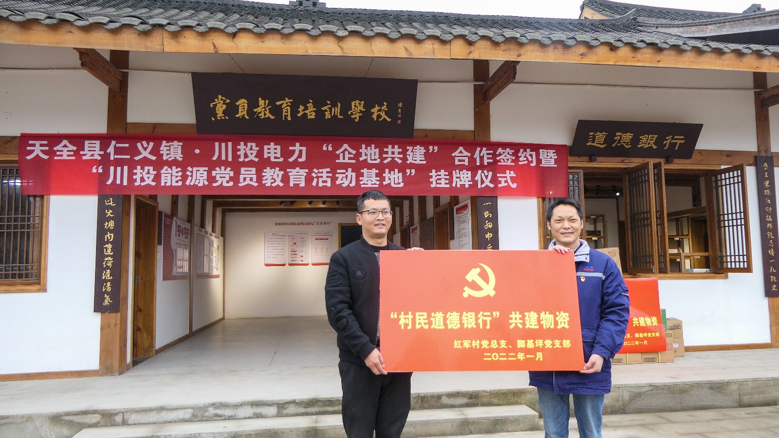 1月7日,天全縣仁義鎮(zhèn)和川投電力“企地共建”合作簽約暨“川投能源黨員黨性教育培訓(xùn)基地”掛牌儀式在天全縣仁義鎮(zhèn)紅軍村舉行。會上,川投電力黨委和仁義鎮(zhèn)黨委,川投電力腳基坪黨支部和紅軍村黨總支分層分級簽定了《企地共建框架合作協(xié)議》,雙方領(lǐng)導(dǎo)為“川投能源黨員黨性教育培訓(xùn)基地”舉行了揭牌儀式,并在紅軍村開展了 “支部結(jié)對共建、助推鄉(xiāng)村振興”主題黨日活動。