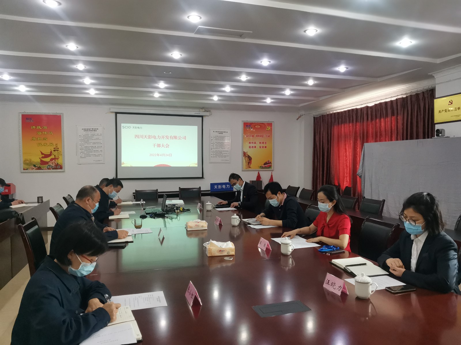 4月24日,天彭電力召開(kāi)公司干部大會(huì),川投能源黨委委員、紀(jì)委書(shū)記戴月洪、人力資源部經(jīng)理王歆、紀(jì)檢工作部副主任肖堯出席大會(huì),天彭電力領(lǐng)導(dǎo)班子成員、中層以上干部參加會(huì)議,會(huì)議由王歆主持。