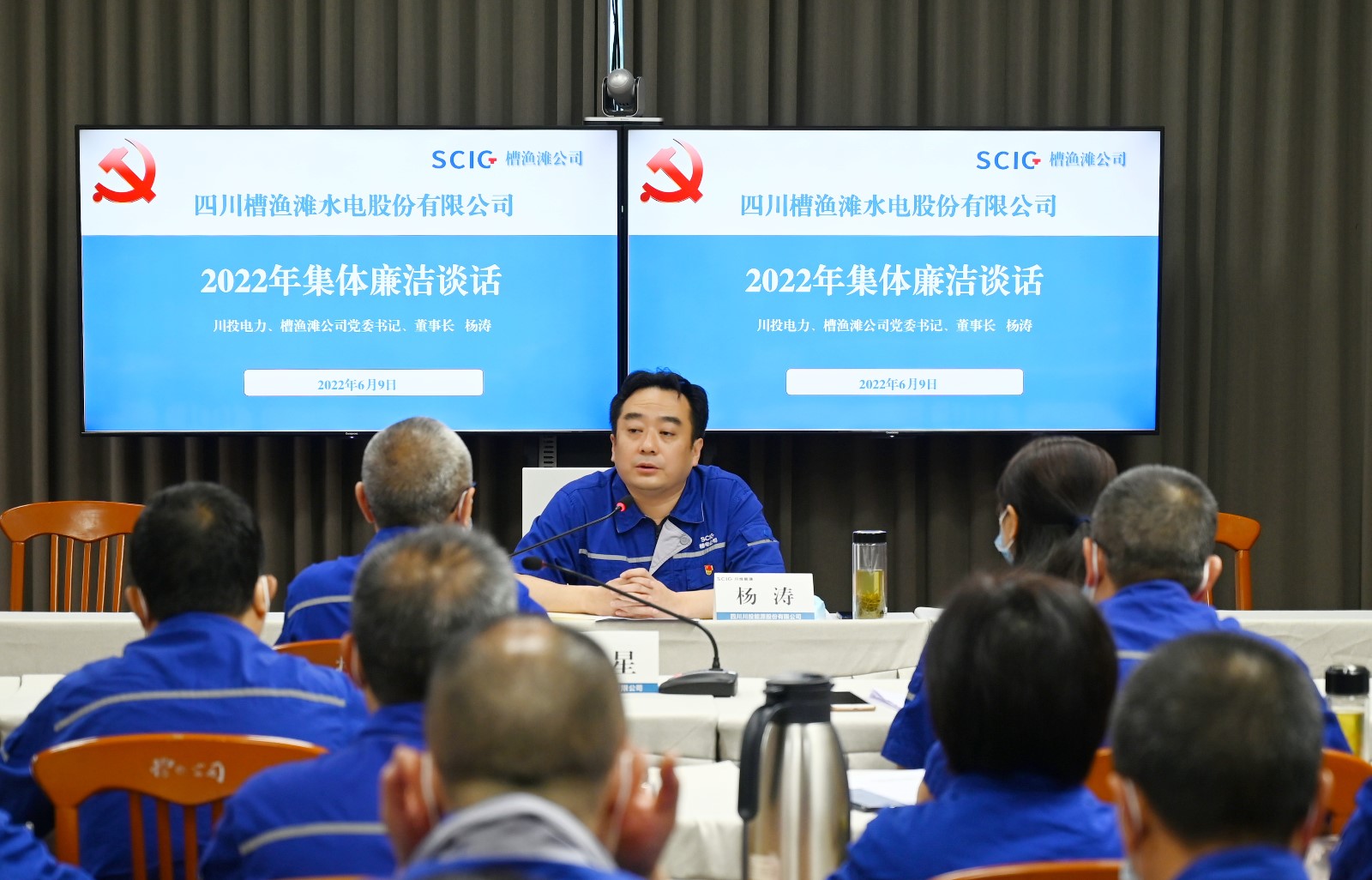 川投電力黨委書記、董事長、槽漁灘公司黨委書記、董事長楊濤對參會人員進行集體廉潔談話,他根據《黨員領導干部廉潔自律準則》,通過廉潔從業、廉潔用權、廉潔修身、廉潔齊家四個方面提出要求:一要堅定不移講政治,率先垂范講紀律;二要正確對待權力,自覺接受監督;三要加強政治理論學習,提高黨性修養;四要注重自身涵養,樹立良好家風。