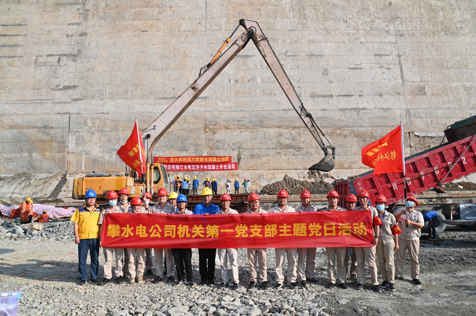 按照銀江水電站“決戰四季度、大干一百天”活動安排,計劃于9月29日下午開始主體工程泄水系統消力池首倉混凝土澆筑。為服務該項重要節點目標的順利實現,9月29日,由機關第一黨支部牽頭,邀請聯建支部部分黨員,到銀江水電站施工現場,開展了主題為“服務消力池首倉混凝土澆筑,在決戰100天活動中貢獻支部力量,以實際行動喜迎二十大”的主題黨日活動。