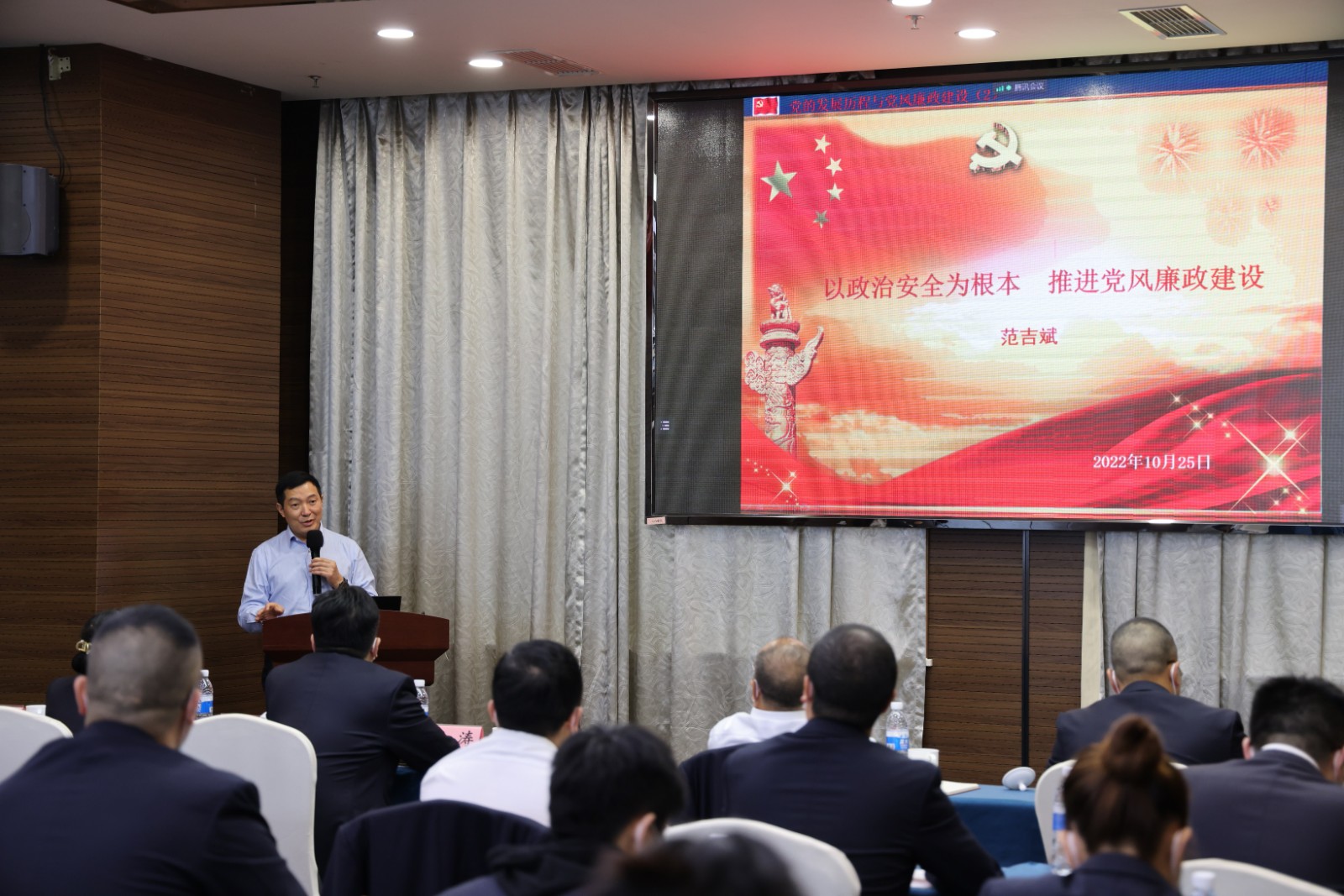 公司領(lǐng)導班子成員、全體黨員分別在主會場、分會場參會,會議嚴格遵守疫情防控各項規(guī)定。