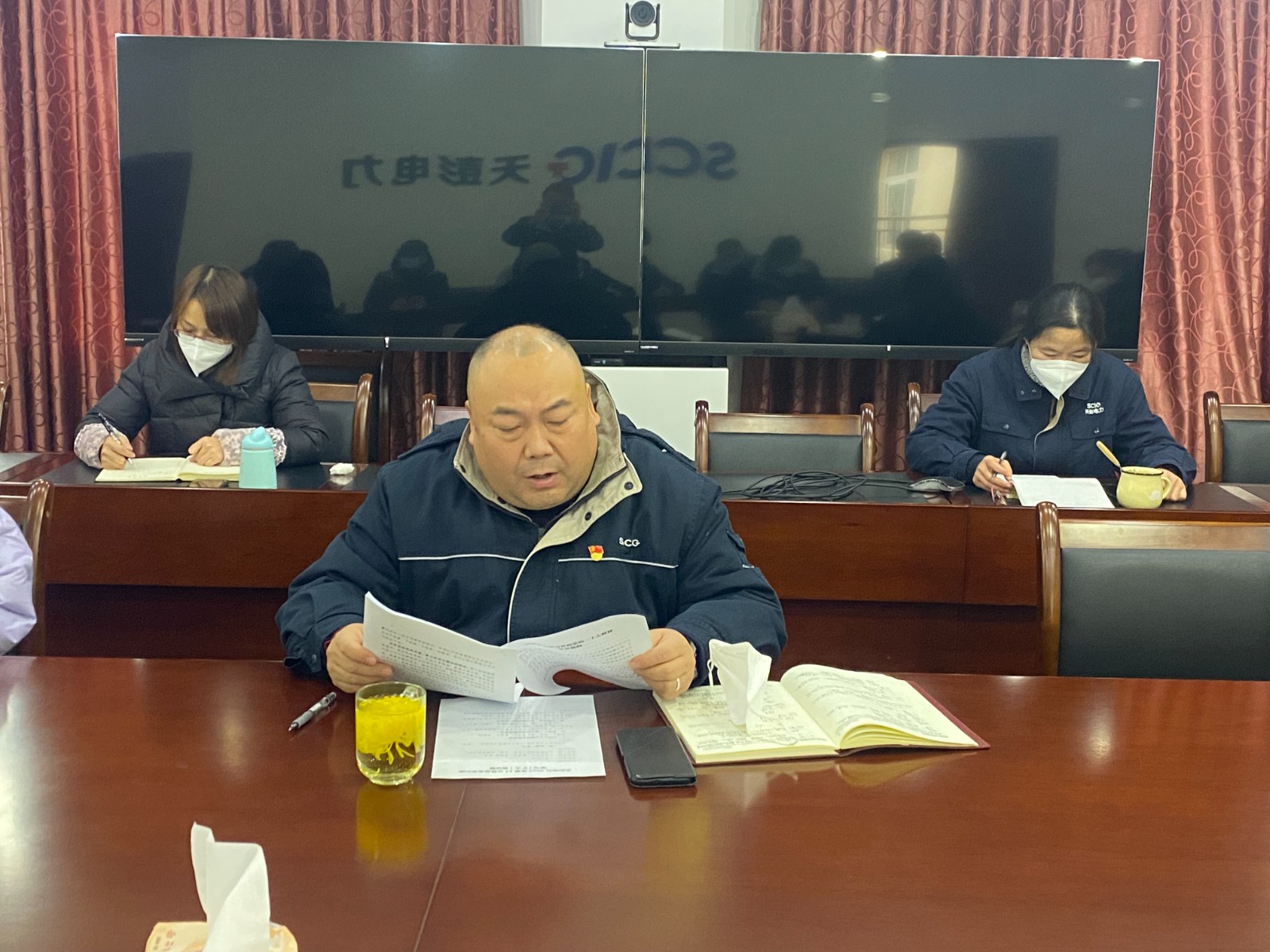 陳忠指出,學(xué)習(xí)宣傳貫徹黨的二十大精神事關(guān)黨和國家事業(yè)繼往開來,事關(guān)中國特色社會(huì)主義前途命運(yùn),事關(guān)中華民族偉大復(fù)興,具有重大現(xiàn)實(shí)意義和深遠(yuǎn)歷史意義。公司全體黨員干部要嚴(yán)格按照習(xí)近平總書記的指示要求,迅速把全體黨員同志的思想認(rèn)識(shí)統(tǒng)一到黨的二十大精神上來,行動(dòng)步調(diào)明確到黨中央的決策部署上來,奮進(jìn)力量凝聚到公司中心工作上來,用實(shí)際行動(dòng)踐行堅(jiān)定不移聽黨話、感黨恩、跟黨走,推動(dòng)黨的二十大精神在天彭電力落地生根、開花結(jié)果。