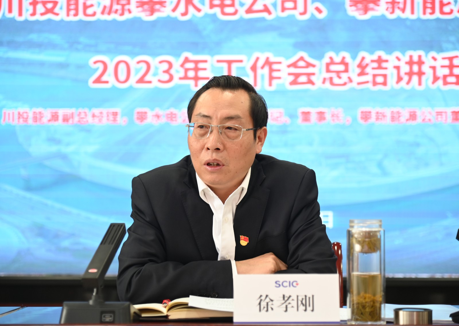 川投能源副總經(jīng)理,攀水電公司黨總支書記、董事長(zhǎng),攀新能源公司董事長(zhǎng)徐孝剛作了題為《踔厲奮發(fā)踏征程,鉚足干勁拼發(fā)展》的主題講話。他表示:2022年是銀江水電站全面進(jìn)入主體工程施工的關(guān)鍵之年和攀新能源公司新能源快速發(fā)展的突破之年,攀水電公司團(tuán)結(jié)帶領(lǐng)各參建單位,連續(xù)克服新冠疫情多發(fā)、地質(zhì)條件復(fù)雜、砂石骨料短缺等各種影響,精心謀劃施工組織,合理調(diào)配施工資源,組織開(kāi)展“決戰(zhàn)四季度、大干一百天,力爭(zhēng)提前完成二期基坑開(kāi)挖,加快主體工程施工,獻(xiàn)禮二十大”等勞動(dòng)競(jìng)賽,確保了銀江水電站工程建設(shè)高效有序推進(jìn)和公司各項(xiàng)年度目標(biāo)任務(wù)順利完成。攀新能源公司成功收購(gòu)了廣西農(nóng)光公司51%控股權(quán),實(shí)現(xiàn)了新能源光伏大型控股項(xiàng)目的重大“破冰”;完成了攀枝花郵處中心首個(gè)自主開(kāi)發(fā)新能源項(xiàng)目的建設(shè)投運(yùn),實(shí)現(xiàn)了分布式光伏項(xiàng)目從“0”到“1”的關(guān)鍵性突破;有力推動(dòng)了攀新能源公司快速高質(zhì)量發(fā)展。
