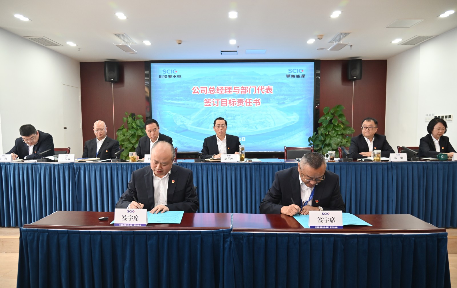 會(huì)議傳達(dá)學(xué)習(xí)了川投集團(tuán)、川投能源2023年工作會(huì)精神;攀水電公司總經(jīng)理吳巍嶼和攀新能源公司總經(jīng)理周軍分別作了兩公司2022年工作總結(jié)及2023年工作計(jì)劃的報(bào)告,全面總結(jié)了2022年各項(xiàng)目標(biāo)任務(wù)完成情況,分析了當(dāng)前面臨的形勢(shì)和問(wèn)題,分解下達(dá)了2023年主要目標(biāo)任務(wù),提出了主要工作舉措。按照董事會(huì)授權(quán),吳巍嶼總經(jīng)理與攀水電公司部門代表簽訂了《2023年度部門目標(biāo)責(zé)任書》;部門及參建單位代表分別作了表態(tài)發(fā)言。