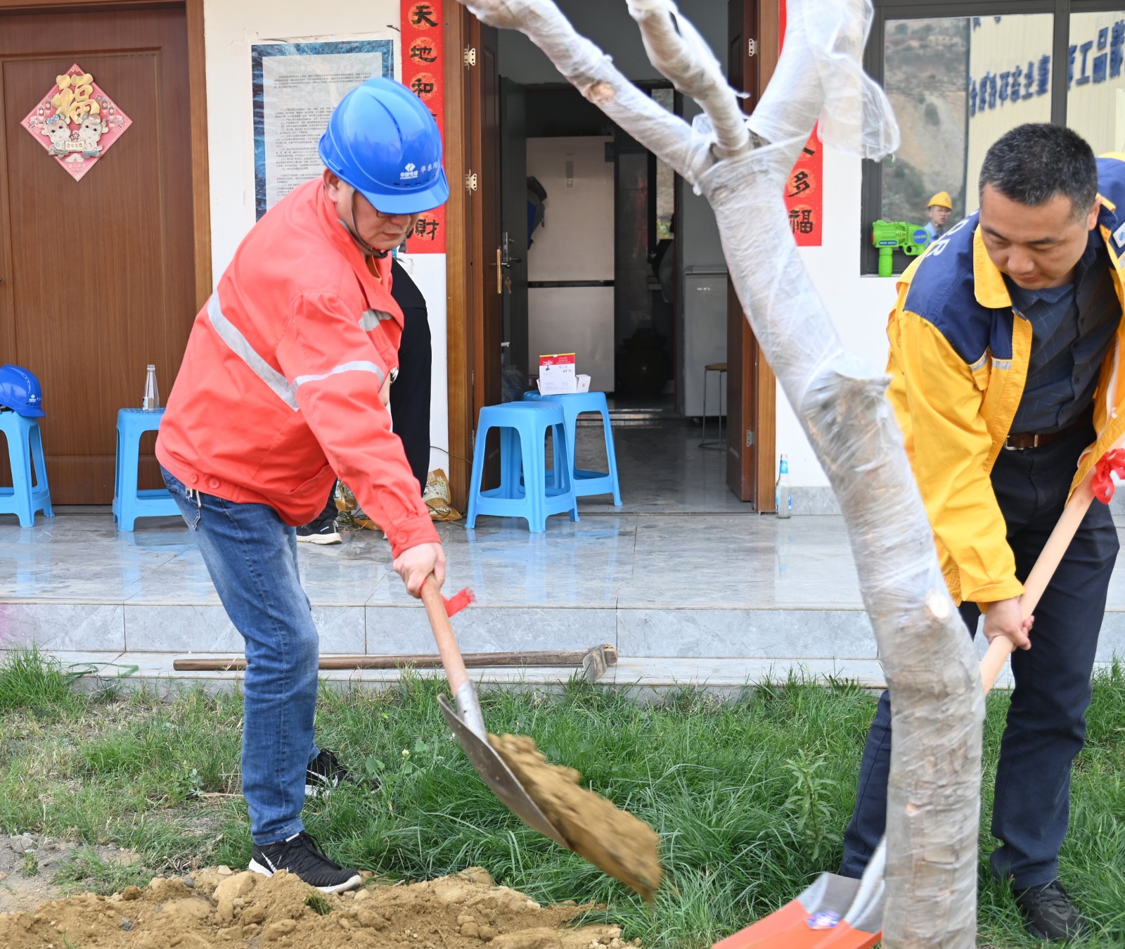 隨后,在金河村芒果專家的專業輔導下大家積極動手、挖坑種樹,各支部責任田呈現一派緊張有序的勞動景象,參加植樹活動的黨員、職工個個熱情洋溢、干勁十足,有的拿鐵鍬、有的運樹苗,你追我趕,每個環節認真到位,到處都是忙碌的身影和勞動的歡聲笑語,各支部相繼完成植樹目標,并在專家的驗收后簽名、掛牌,一顆顆共建之樹在大黨建宣傳陣地安家落戶。