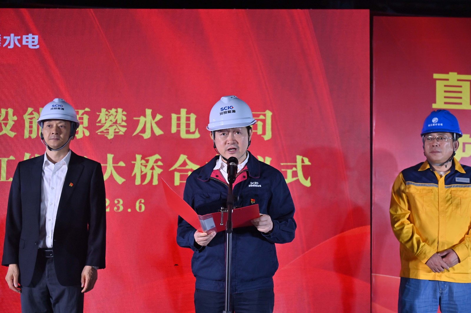 當前正值川投能源深入開展學習貫徹習近平新時代中國特色社會主義思想主題教育的時期,攀水電黨總支以高度政治責任感扎實推進主題教育走深走實,確保學用結合取得實效。2023年6月15日,夜晚的銀江大橋施工現場燈火璀璨,連續幾天超過40℃高溫的攀枝花迎來了難得的涼爽天氣,攀水電公司組織開展了金沙江銀江大橋合龍儀式,川投能源黨委副書記、工會主席冉蘭平,黨委委員、副總經理、總法律顧問楊平,川投能源副總經理、攀水電公司黨總支書記、董事長徐孝剛出席儀式,儀式由攀水電公司黨總支副書記、總經理吳巍嶼主持。公司相關領導及參建單位共計50余人參加儀式。