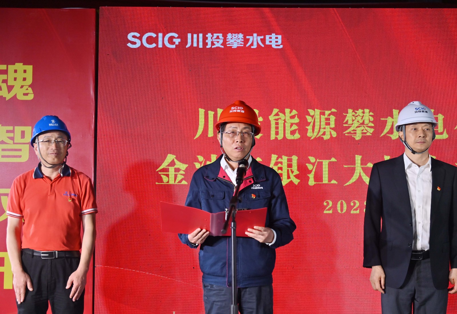 儀式首先由楊平致辭,他對辛苦奮戰在銀江大橋一線的建設者們致以誠摯的問候和衷心的感謝!他表示:銀江大橋自開工以來,在攀水電公司團結帶領下,先后克服了材料價格上漲、汛期搶抓橋墩基礎施工、疫情考驗等重重困難,多措并舉確保了各個目標節點按期實現,取得了優異的成績。希望大家繼續以強烈的擔當意識和良好的工作作風,扎實做好主題教育各項工作,繼續發揚勞動精神、工匠精神,主動作為,攻堅克難,在做好安全環保、防洪度汛、隱患排查、消缺收尾工作的基礎上,早日實現銀江大橋通車目標。