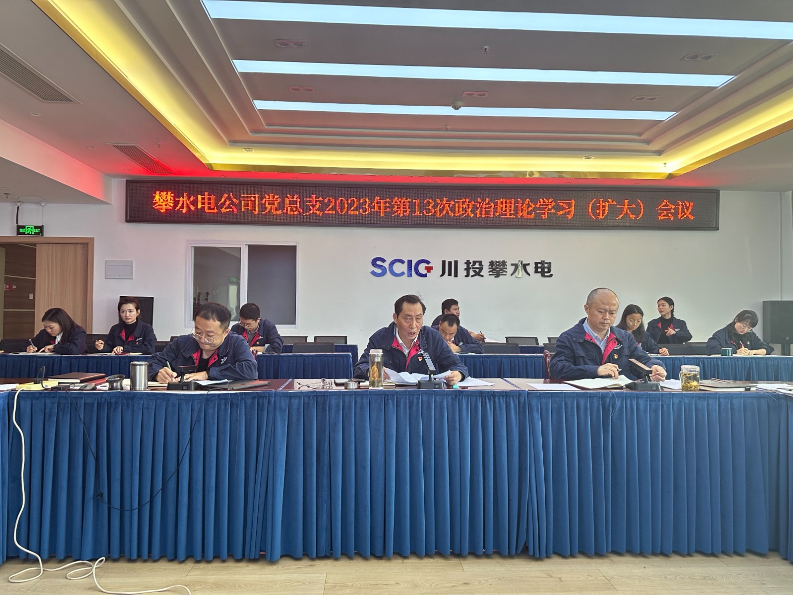 11月28日,公司黨總支在2620會議室召開了2023年第13次政治理論學習(擴大)會議,會議由川投能源副總經理,攀水電公司黨總支書記、董事長徐孝剛主持,黨總支政治理論學習會成員、全體中干、支部書記、其他黨員、入黨積極分子共30余人參加學習。