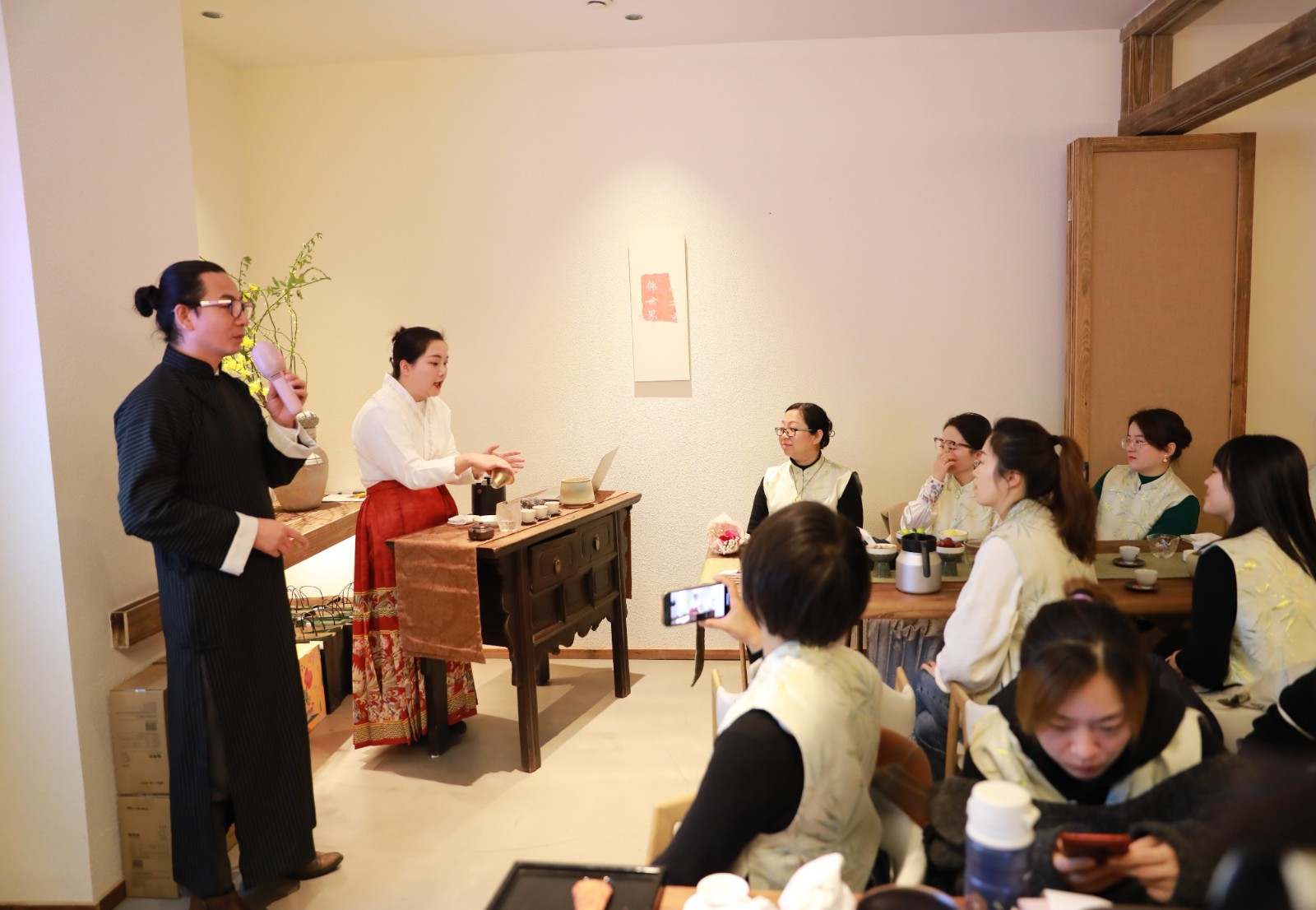 活動(dòng)現(xiàn)場(chǎng),茶藝?yán)蠋煆牟枞~的起源、分類(lèi)、功效、作用和泡茶知識(shí)技巧等方面進(jìn)行講解,并演示了沖泡流程。隨后進(jìn)行了實(shí)操比賽,大家紛紛動(dòng)手練習(xí)沖泡技巧,備器、煎水、賞茶、潔具、置茶、泡茶、奉茶、飲茶……,整個(gè)課堂充滿(mǎn)了幽幽茶香,大家在輕松愉悅的氛圍中,學(xué)習(xí)傳統(tǒng)茶藝禮儀。