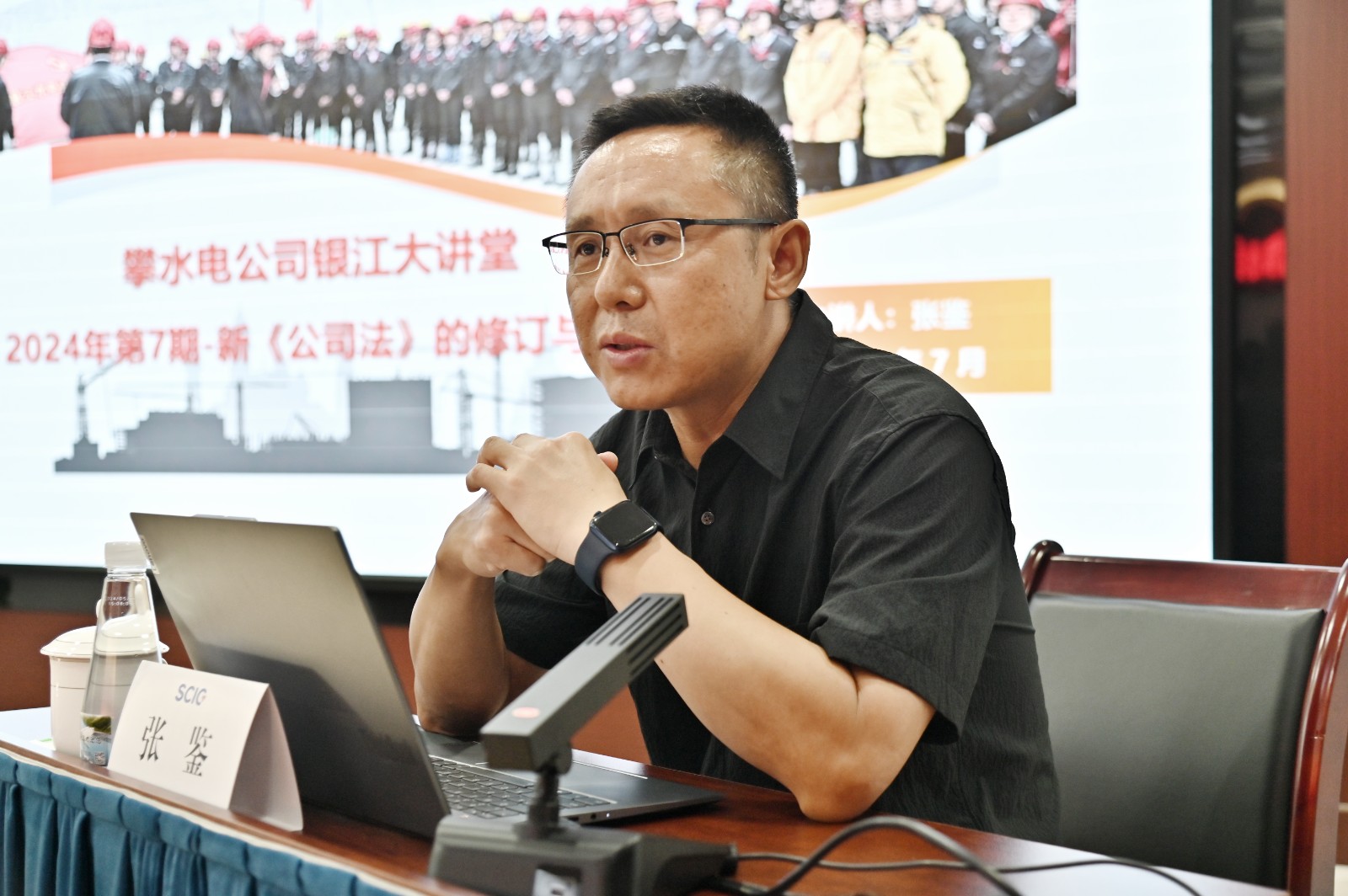 為進一步推進依法治企和合規管理,提高董監高履職能力,7月11日,攀水電公司組織開展了以“新《公司法》背景下董監高履職能力提升”為主題的第7期“銀江大講堂”,邀請攀枝花學院法學院專業教師、資深律師張鑒進行專題授課。公司股東單位代表、董事、監事及高管共10余人參加培訓。