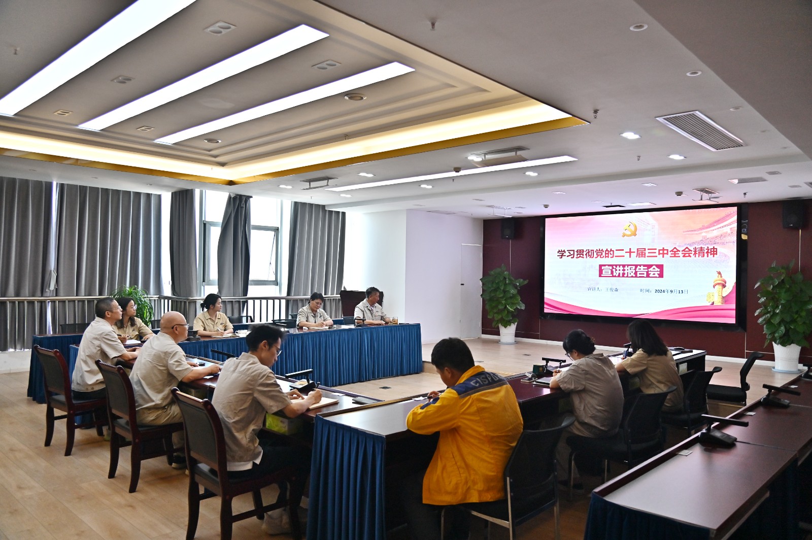 為深入學習貫徹黨的二十屆三中全會精神,引導廣大黨員把思想和行動統一到全會精神上來,根據川投能源黨委的部署及攀水電公司黨總支的安排,9月13日下午,攀水電公司黨總支委員、財務總監王俊森在聯系指導黨支部及分管部門開展黨的二十屆三中全會精神專題宣講。公司資金財務部、設計監理聯合黨支部全體黨員共計10余人參加此次宣講。