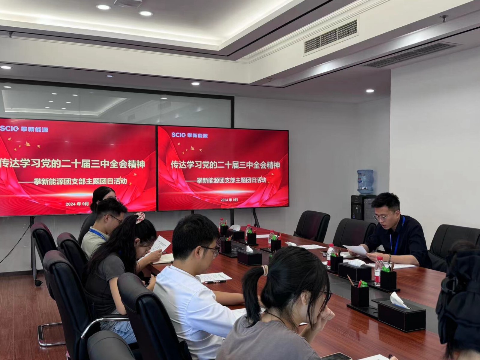 近日,攀新能源公司團(tuán)支部在川投大廈707會(huì)議室舉行2024年9月主題團(tuán)日活動(dòng),專題傳達(dá)學(xué)習(xí)《中國(guó)共產(chǎn)黨第二十屆中央委員會(huì)第三次全體會(huì)議公報(bào)》,學(xué)習(xí)貫徹黨的二十屆三中全會(huì)精神。攀新能源團(tuán)支部書(shū)記、經(jīng)營(yíng)管理部經(jīng)理潘鑫主持并領(lǐng)學(xué),公司全體團(tuán)員及屏山抽蓄公司全體團(tuán)員參會(huì)。
