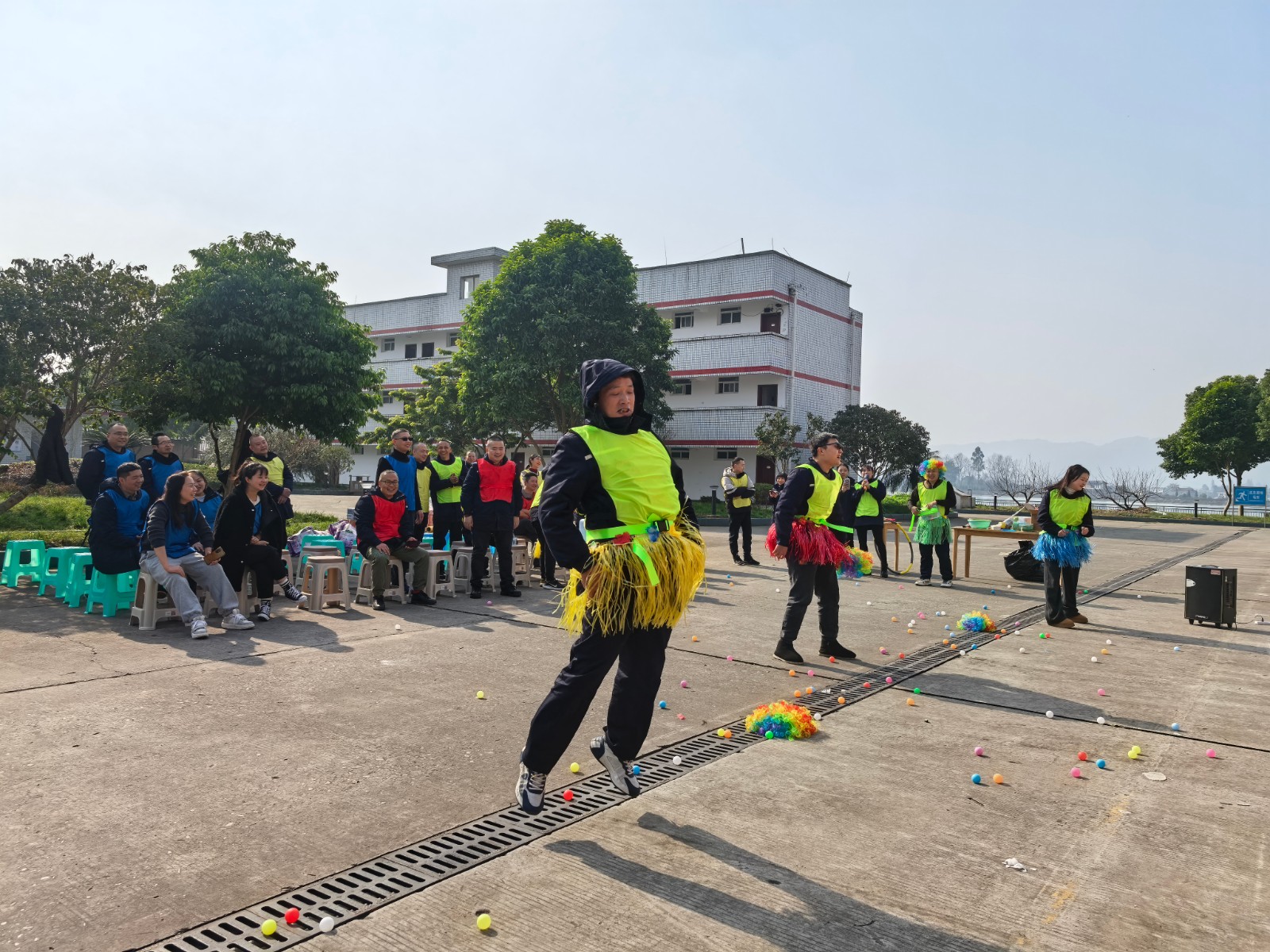 本次游園會設置了多個充滿趣味與挑戰(zhàn)的運動項目。在“齊心協(xié)力運球”項目中,參與者用前胸后背夾住氣球向前運送到終點,選手們緊密配合,步伐一致,在保證氣球不落地的前提下快速前進。“公雞下蛋”項目展現(xiàn)了職工們的活力與敏捷,“運送面粉”項目,無疑是一個考驗團隊合作與策略規(guī)劃的精彩項目,面粉被風吹散或是隊友間傳遞時忍俊不禁的畫面,更是將活動現(xiàn)場氣氛推向了高潮,歡呼聲、助威聲、惋惜聲此起彼伏。