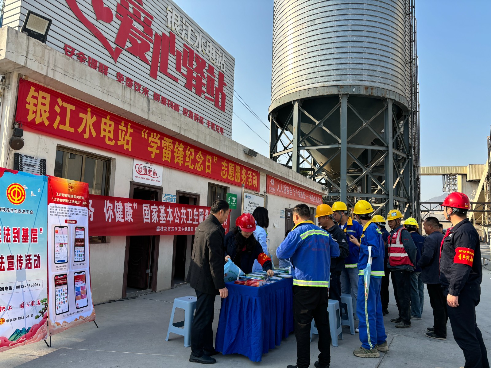 活動(dòng)現(xiàn)場,銀江工地愛心驛站變身“時(shí)尚沙龍”?,攀枝花市美容美發(fā)行業(yè)協(xié)會(huì)10名專業(yè)理發(fā)師現(xiàn)場打造“10分鐘快剪”服務(wù)圈,公司工會(huì)同步提供消毒濕巾、免洗洗手液,確保大家剪完發(fā),清清爽爽上工去;銀江鎮(zhèn)衛(wèi)生院創(chuàng)新推出“移動(dòng)健康管家”服務(wù),由4名醫(yī)務(wù)人員分別進(jìn)行血糖、血壓測量,為居住半年以上時(shí)間的居民建立健康檔案,簽約家庭醫(yī)生服務(wù),為慢性病患者建檔,更有中醫(yī)把脈問診開展健康咨詢解答等;安全健康知識(shí)“沉浸教學(xué)”?,多名志愿者為一線建設(shè)者開展中暑、熱射病、春季流感預(yù)防等職業(yè)健康治知識(shí)宣傳,發(fā)放健康教育宣傳資料,為職工發(fā)放《安全生產(chǎn)法》《四川省安全生產(chǎn)條例》《安全生產(chǎn)與勞動(dòng)保護(hù)職工學(xué)習(xí)手冊(cè)》《職業(yè)病防治宣傳手冊(cè)》《應(yīng)急逃生知識(shí)宣傳冊(cè)》等資料1000余份,將雷鋒精神轉(zhuǎn)化為常態(tài)化服務(wù),?贏得了一線職工的一致好評(píng)。?