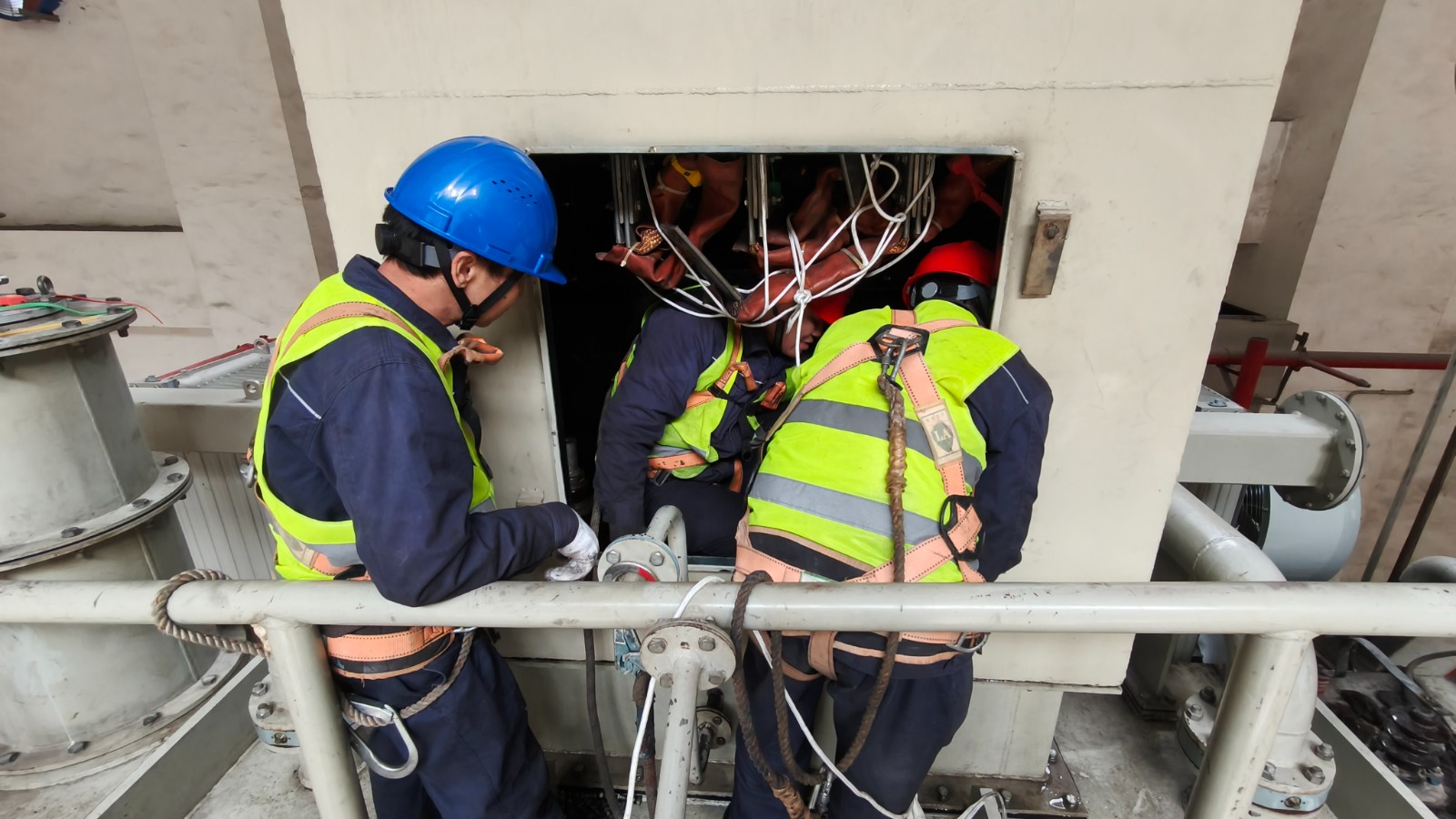 因上游電廠突發情況,導致本次停電時間延誤、有效作業時間縮短,本次檢修任務面臨嚴峻考驗。3月13日,腳基坪電廠迅速組建了一支由6名技術骨干組成的黨員先鋒隊。在檢修工作中,充分發揮黨員的先鋒模范作用,以身作則,沖鋒在前,用實際行動詮釋了黨員的責任與擔當。主動加班加點,相互協作,密切配合,共同攻克了一個又一個技術難關,確保了檢修工作的順利進行。同時,結合檢修現場實際情況,提出了一系列切實可行的優化方案,有效提升了檢修效率和質量。黨員先鋒隊隊員們精神抖擻,即便面對海量操作任務,也絲毫不減嚴謹態度,共完成2項檢修項目、3項技術改造、全廠電氣設備預防性試驗。