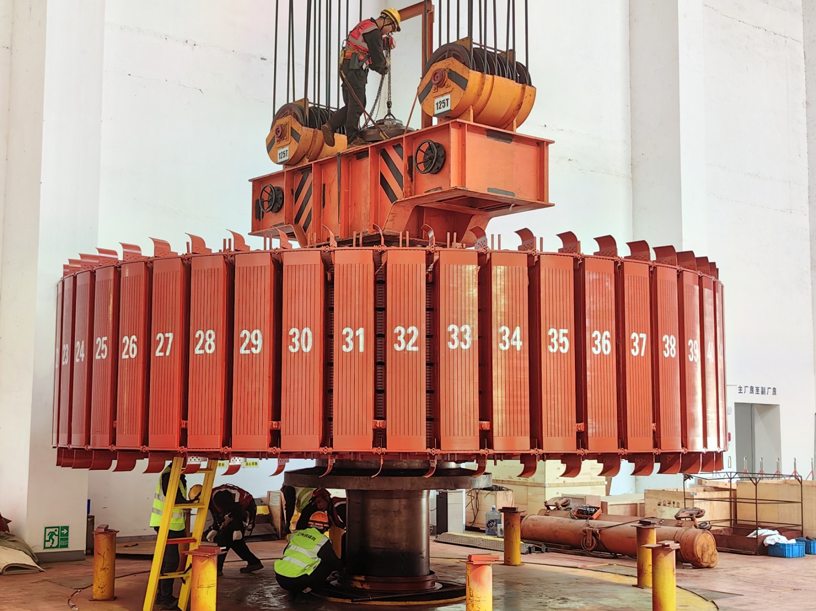 由于轉(zhuǎn)子與定子之間的間隙只有12毫米,要把這兩個“大家伙”精準(zhǔn)送回機坑指定位置并安裝好,難度系數(shù)非常高。川投電力高度重視,上下聯(lián)動,周密部署,全鏈條壓實安全生產(chǎn)責(zé)任,確保轉(zhuǎn)子回裝工作萬無一失。