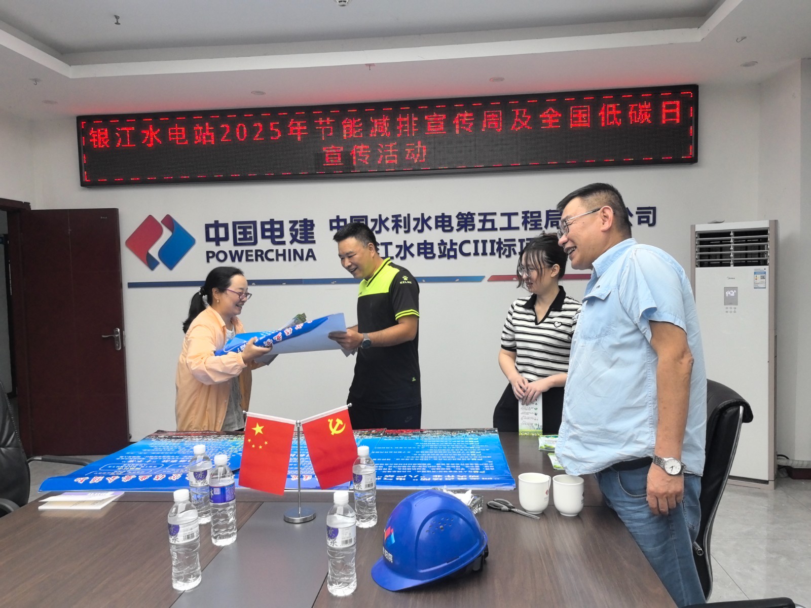 為進一步提升攀水電公司及銀江水電站各參建單位的安全意識,營造濃厚的安全生產氛圍,6月25日,攀水電公司組織開展了2025年安全生產月和全國低碳日宣傳活動,攀枝花市東區發展和改革局、各參建單位代表共計20余人參加活動。