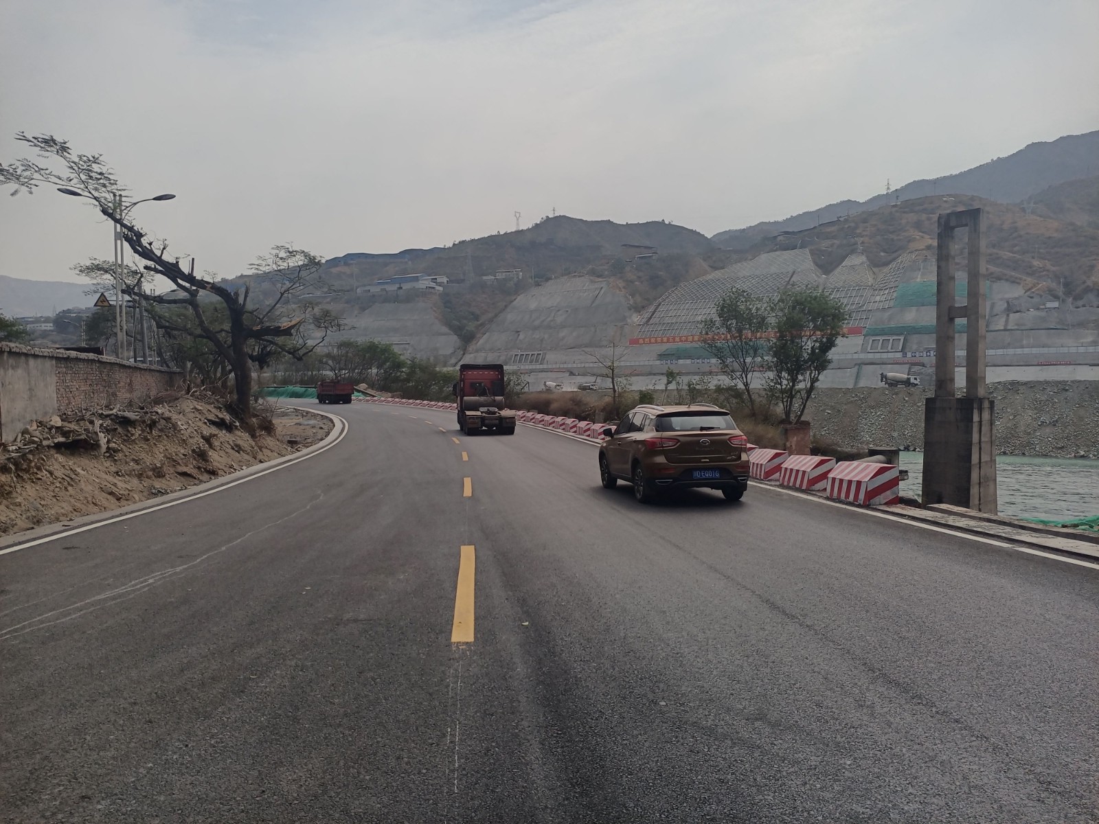 據(jù)悉,銀江水電站左岸建筑物布置占?jí)含F(xiàn)有G353國道,需結(jié)合左岸壩肩邊坡開挖進(jìn)行永久改線。左岸壩肩邊坡開挖及G353國道永久改線施工期間,需通過G353國道改線臨時(shí)公路分流地方交通。此次通車的G353國道改線臨時(shí)路線路長約為0.41km,道路線形采用二級(jí)公路標(biāo)準(zhǔn),雙車道,路面寬度11.0m,路基寬度12.0m,瀝青混凝土路面。