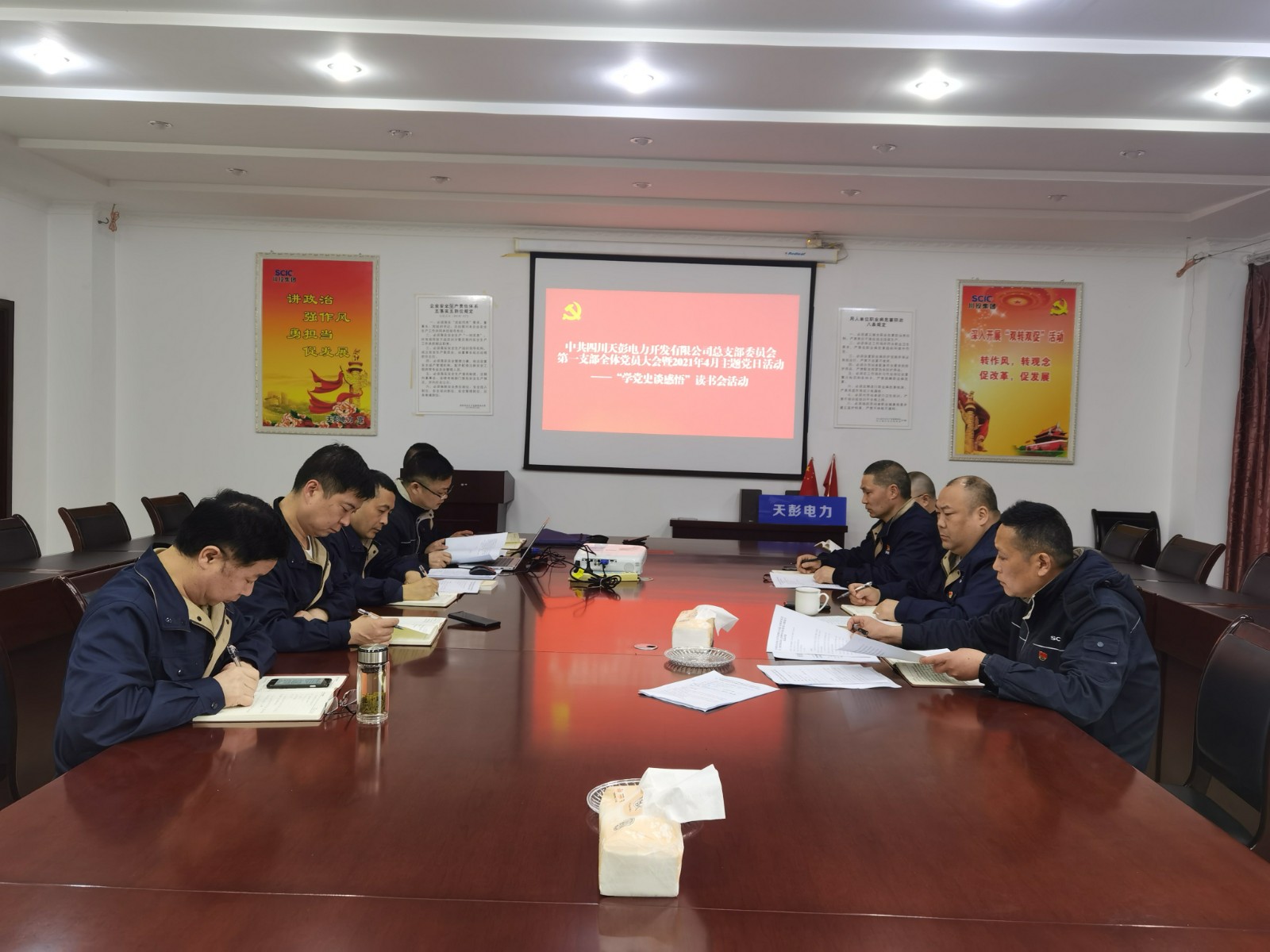 按照公司黨總支關于黨史學習教育的安排,4月27日下午,川投能源天彭電力第一黨支部全體黨員在二樓會議室開展了“學黨史 談感悟”黨史學習教育讀書會主題黨日活動, 公司黨總支書記、總經理陳忠參加了活動,活動由第一黨支部書記何剛主持。
