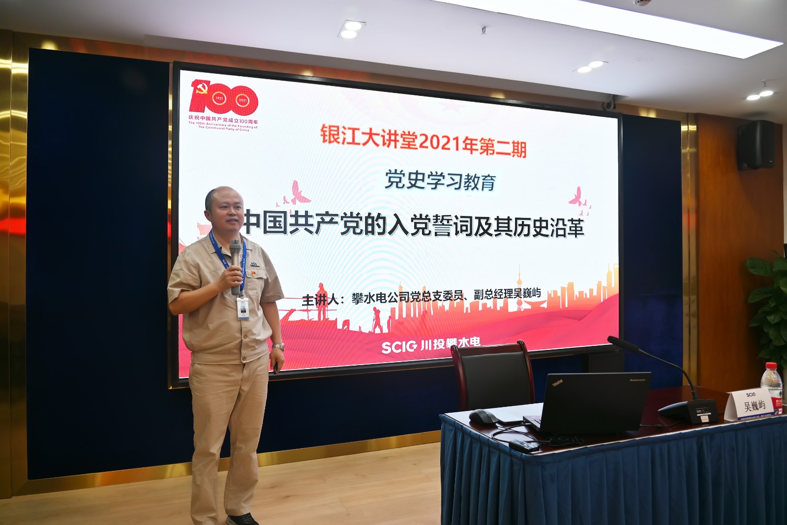 自川投能源攀水電公司“銀江大講堂”開講以來,一直受到了公司員工和各參建單位的廣大歡迎。為持續(xù)開展好“銀江大講堂”活動(dòng),近日結(jié)合黨史學(xué)習(xí)教育主題,開辦了黨史學(xué)習(xí)教育專場(chǎng)。黨員干部學(xué)習(xí)積極性高漲,公司全體員工及各參建單位黨員代表共40余人參加。