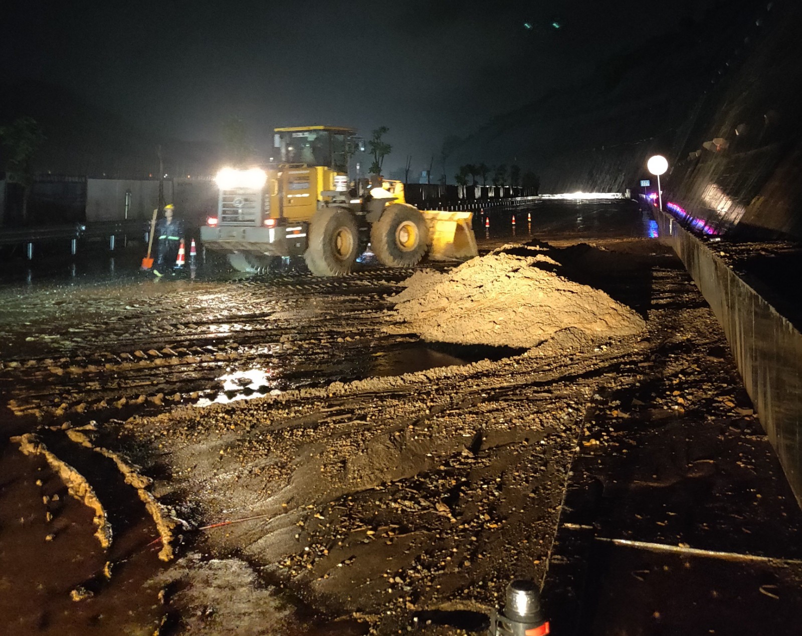 7月5日17時40分,攀枝花市地災辦、防汛辦、氣象臺聯合發(fā)布山洪和地質災害預警信息,公司安全環(huán)保部第一時間傳達預警信息,當晚公司防汛值班領導川投能源副總經理、攀水電公司黨總支書記、董事長徐孝剛帶領值班人員從8時到11時進行防汛值班檢查,對各值班點,重要部位巡視,當晚21時45分,22時15分攀枝花氣象臺分別發(fā)布雷電黃色預警、暴雨黃色預警。攀水電公司組織各參建單位按照防洪度汛工作要求,冒雨開展雨中巡查,對渣場、導流明渠,銀江大橋、砂石拌和系統(tǒng)等重要部位及施工區(qū)域進行全面排查。當晚23點左右,值班人員雨中巡查,發(fā)現暴雨導致轉沱溝邊坡上方工業(yè)園區(qū)內部分棄渣被沖刷到G227國道,嚴重影響道路的正常通行,本著國企社會責任,公司防汛防災帶班領導徐孝剛立即安排二灘監(jiān)理、葛洲壩路橋組織機械設備及人員進行清理,于次日凌晨3點左右清理完畢,確保了G227國道的正常通行。