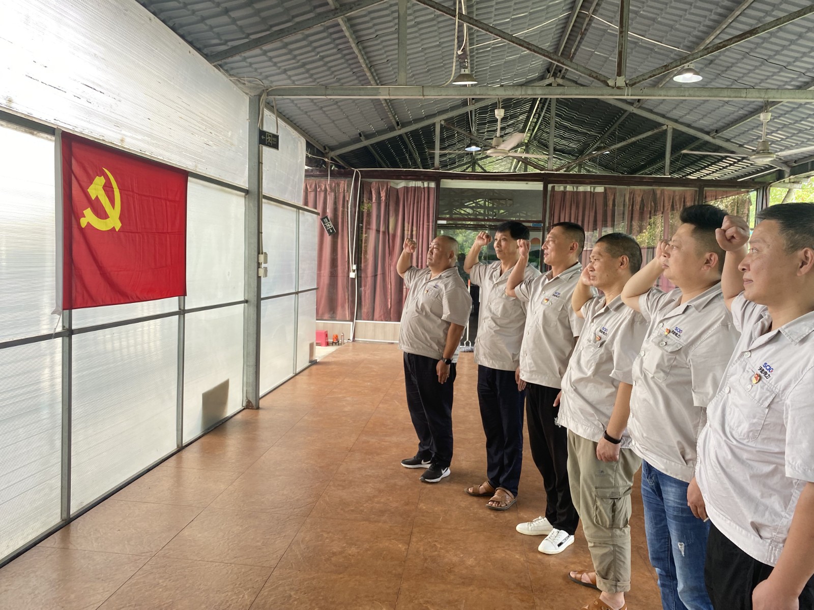 最后,陳忠代表公司黨總支向退役軍人送上了節(jié)日的問(wèn)候和祝福,激勵(lì)大家退役不褪色,永遠(yuǎn)跟在鮮紅的黨旗下。在陳忠的領(lǐng)誓下,公司退役軍人面向鮮紅黨旗高舉右拳,莊嚴(yán)重溫了入黨誓詞,伴隨著雄壯的宣誓聲,本次座談會(huì)圓滿(mǎn)結(jié)束。