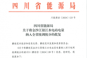 【攀水電公司】銀江水電站成功取得省能源局統調統分批復